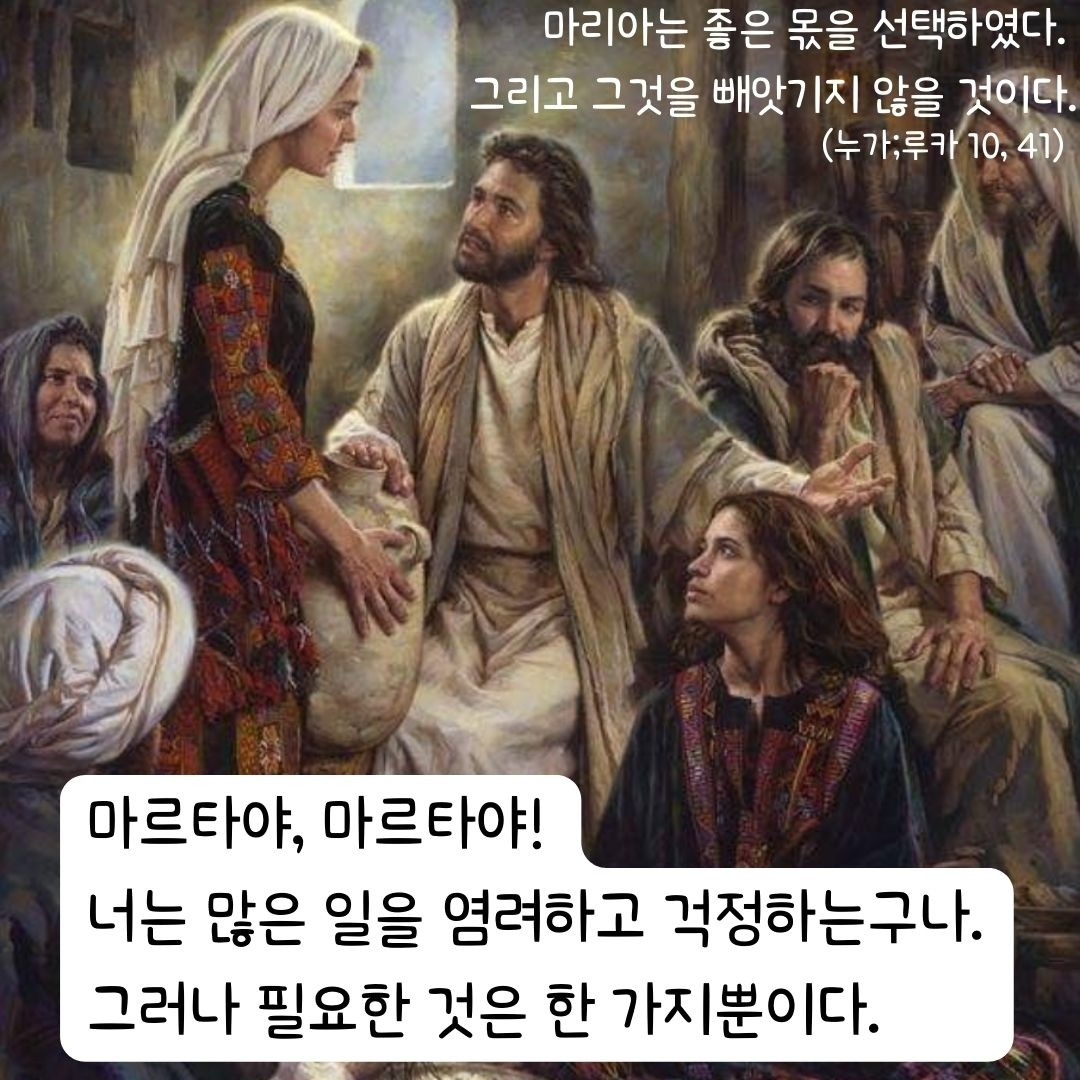 그러나 필요한 것은 한 가지뿐이다. 마리아는 좋은 몫을 선택하였다.