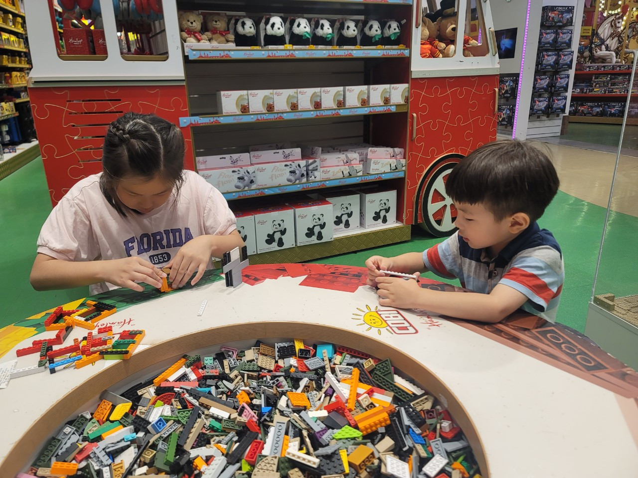 햄리스에 들어서니 아이들은 걱정과 달리, 장난감 쇼핑에는 관심이 전~혀 없었다. 아이들이 즐길 수 있는, 놀 수 있는 놀거리들이 넘쳐났기 때문이다. 여기가 장난감 백화점이여, 키즈 카페여~~~