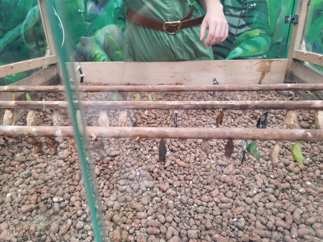 나비가 되기 전의 번데기들이 나무 가지에 달려있었다. 자세히 보면, 나비로 곧 변신해 날개짓을 할것 같은, 점점 나비의 모습으로 되어가는 번데기들이 보인다. 우리 아이들은 한참을 신기하게 바라보았다.