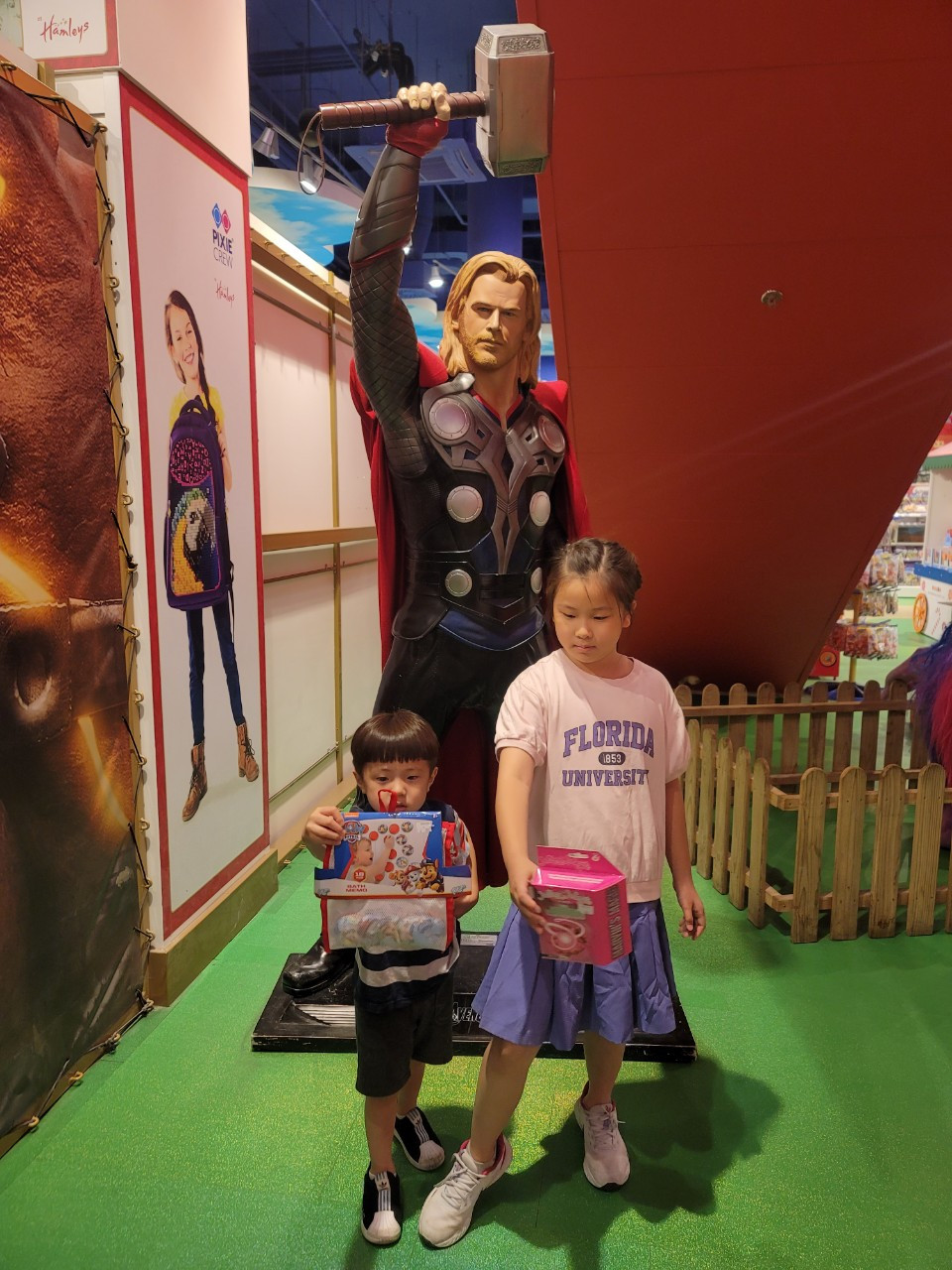 햄리스는 장난감 가게이지만, 2층에서 1층으로 내려오는 대형 미끄럼틀도 있고, 소소하게 아이들이 체험하며 놀 수 있는 공간들이 있어서, 아이들이 참 좋아하는 곳이다. 나는 혹여나 아이들이 이거 저거 다 사달라고 떼를 쓰까봐, 미리 약속을 해주었는데, 다 구경하고 놀다가 나가기 전에, 갖고 싶은 거 딱 하나만 고르면 사주겠다고했다. (물론, 너무 비싼 거, 너무 큰 거를 제외하고 고르라고 단서도 달았다.)