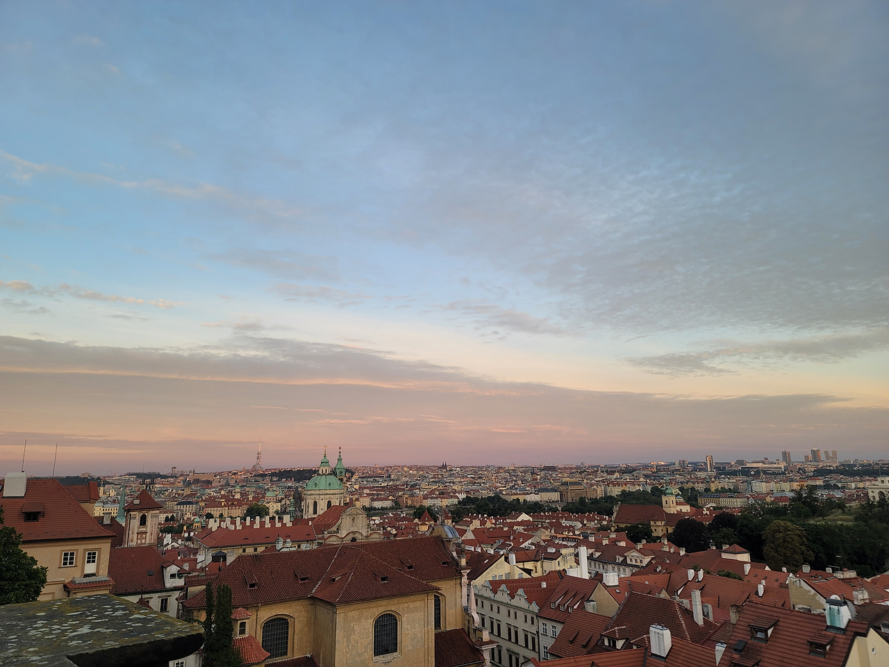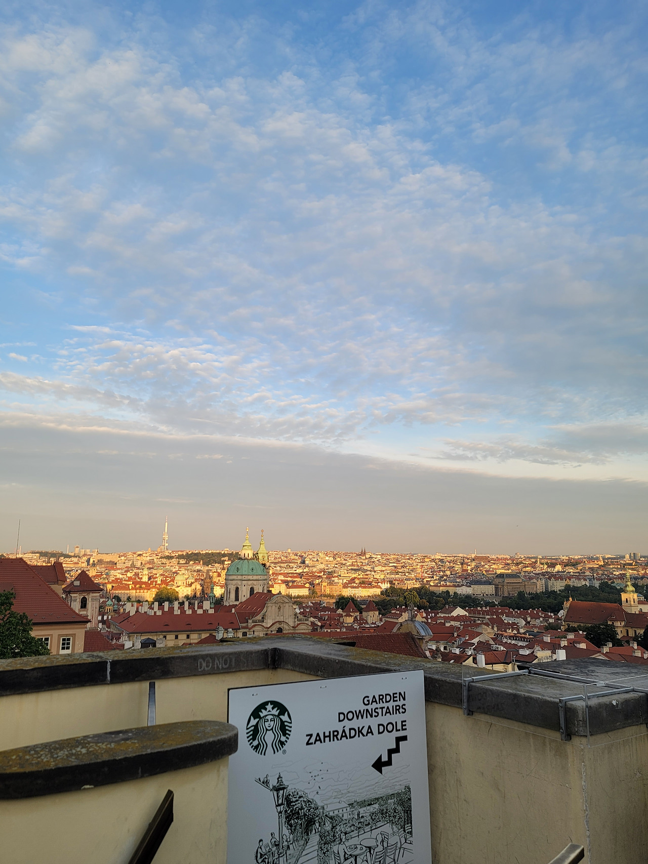 이렇게 다음 날, 우리나라로 돌아가기 위한, 서류 준비를 마치고, 프라하의 마지막 저녁은, 프라하성에서 보내기로 했다. 프라하성의 핫스폿은 다름 아닌 스타벅스!! 프라하성 스타벅스에 앉아 도넛과 커피를 마시며, 프라하 시내를 내려다보는 게 그렇게 낭만적이고 좋을 수 없다. 시간대별로 달라지는 하늘을 바라보고 멍 때리고 있는 시간이.... 참 좋았다. 마지막 날이라고 생각하니, 모든 순간순간이 소중했다.
