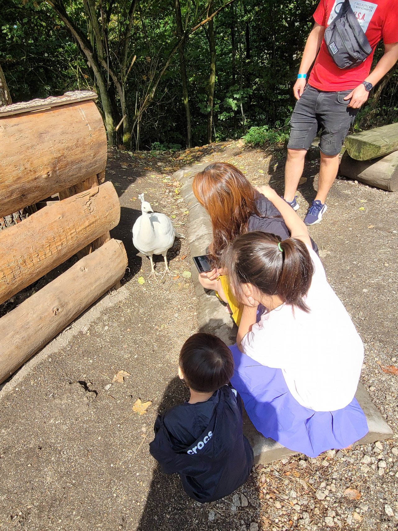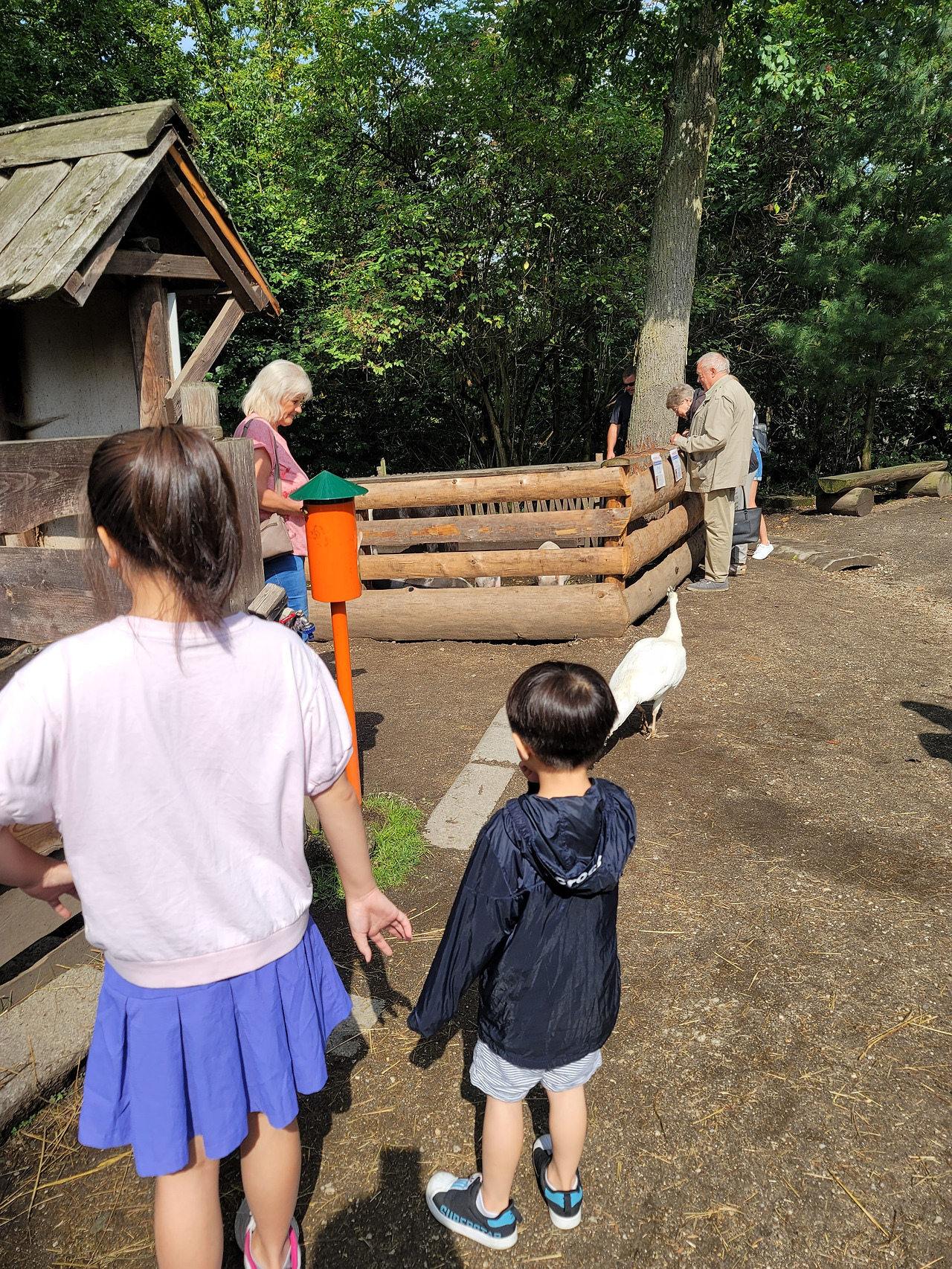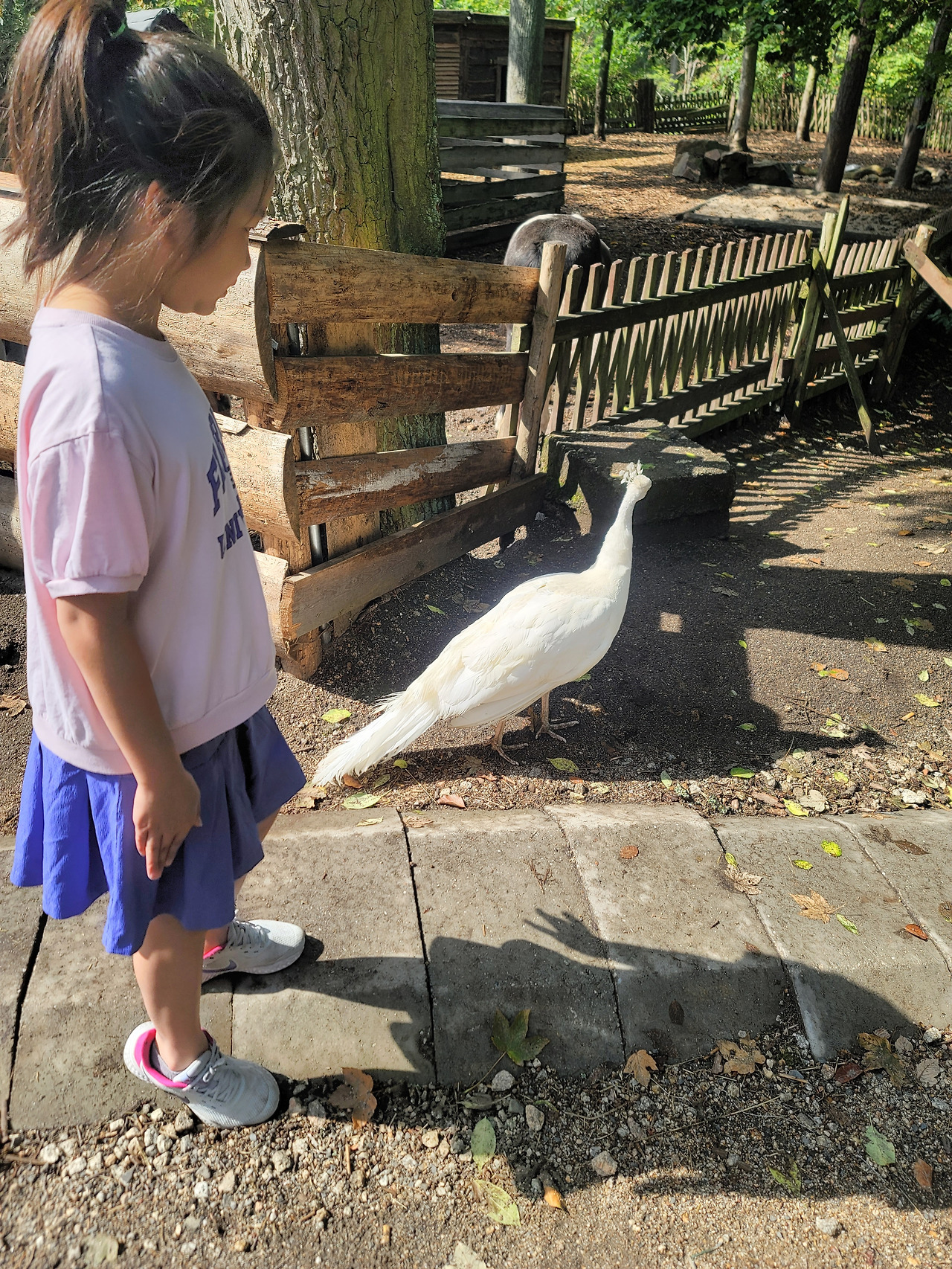 시설이 많은 건 아니지만, 어느 놀이터에서든 신나게 잘 노는 아이들이다.. 놀이터에서 실컷 놀고, 주위를 둘러보니, 그 옆쪽으로는 동물들이 있었다. 그중에 한 마리 공작새가 우리 밖으로 나와, 유유히 우아하게 워킹을 선보이고 있었다. 놀이터보다 동물을 더 사랑하는 우리 아이들은 한동안 공작새를 조심조심 졸졸졸 쫓아다녔다.