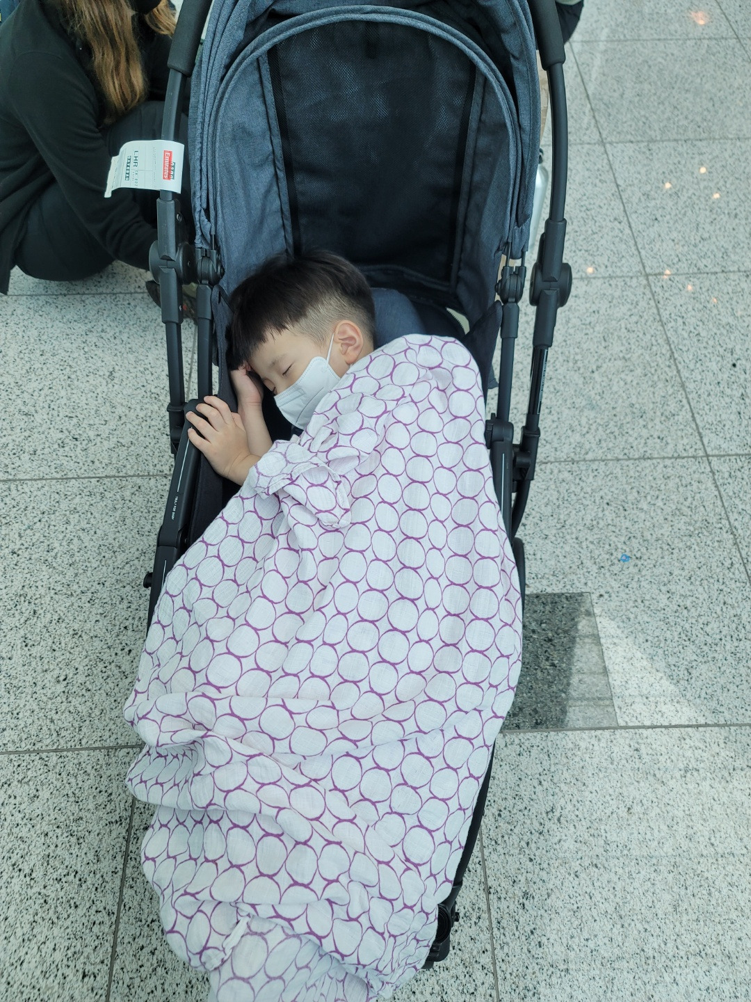 (2019년에 아이 둘 데리고 체코갈 때 그 고생을 해놓고, 나는 왜 또 이러고 있는가! 잠시 현타...) 심지어 경유 5시간 20분이 별 거 아닐 거라 왜 믿고 있었는가...! 다행히 첫 비행은 아이들이 곯아떨어지는 밤 12시! 비행기가 뜨자마자 민찬이와 다인이는 잠이 들었다. 공항이 한산했던 것과 달리, 비행기는 승객들로 꽉 차 있었다. 나는 10세와 5세에게 양쪽 팔다리를 한쪽씩 내어준 채 꼼짝 않고 비행시간을 견뎌내야 했다. 그리고 곧, '비행기에서 조용히 잠들어 있었던 그 시간이 좋았어...'라는 생각이 드는 경유의 시간이 돌아왔다.