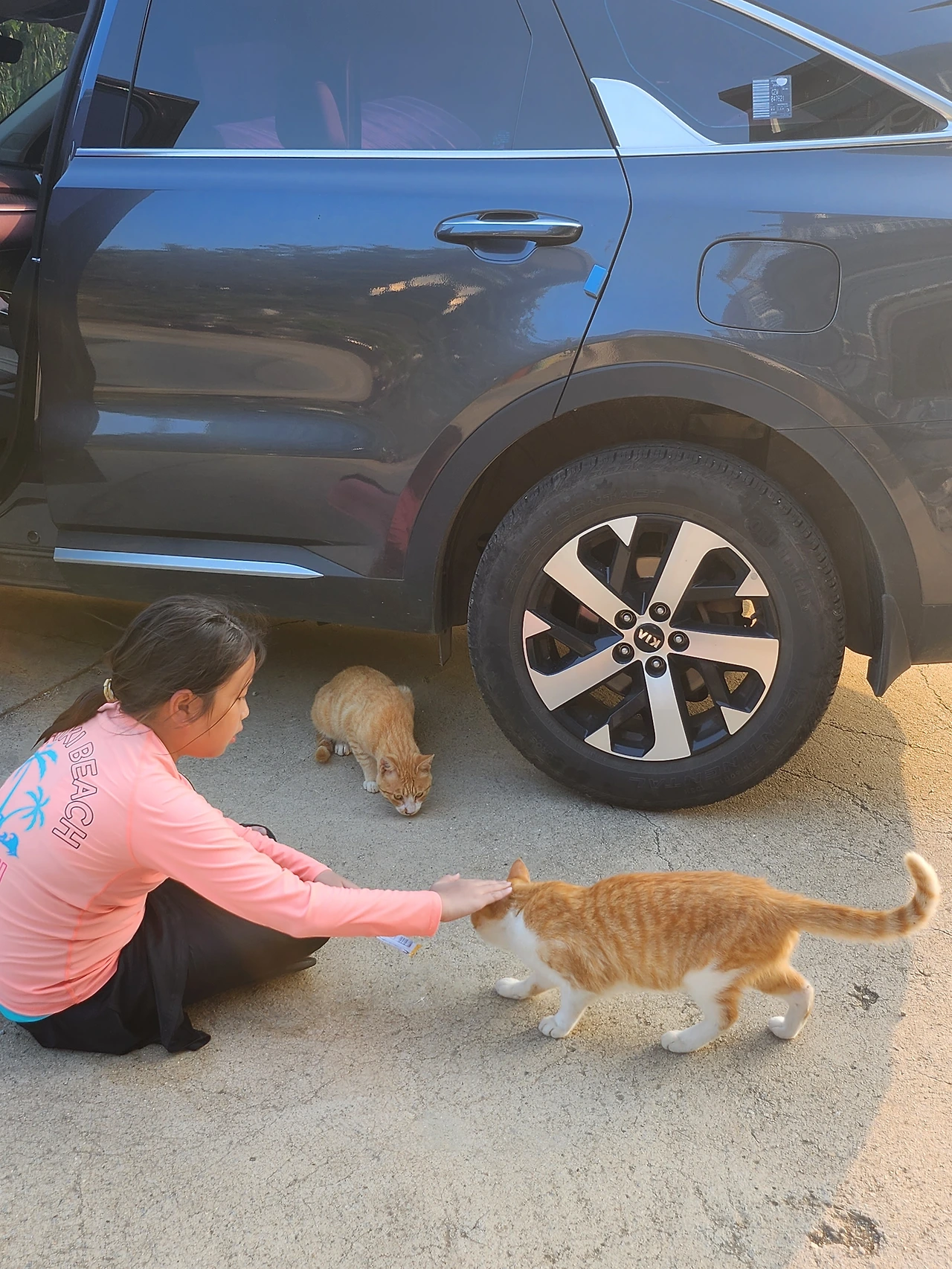 고양이들은 한발짝 다가가면, 세발짝 더 멀어지는 경계심이 있는 고양이였다. 손님들 차 아래가 시원한지, 그곳에 자리잡고 앉아있었다. 차 아래 있는 모습이 위태로워 보였는데, 자그마한 소리에도 재빠르게 반응하는 아이들이니, 여태까지 큰 사고나지 않고 잘 지내고 있는 거겠지...라고 생각할 수 밖에 없었다.