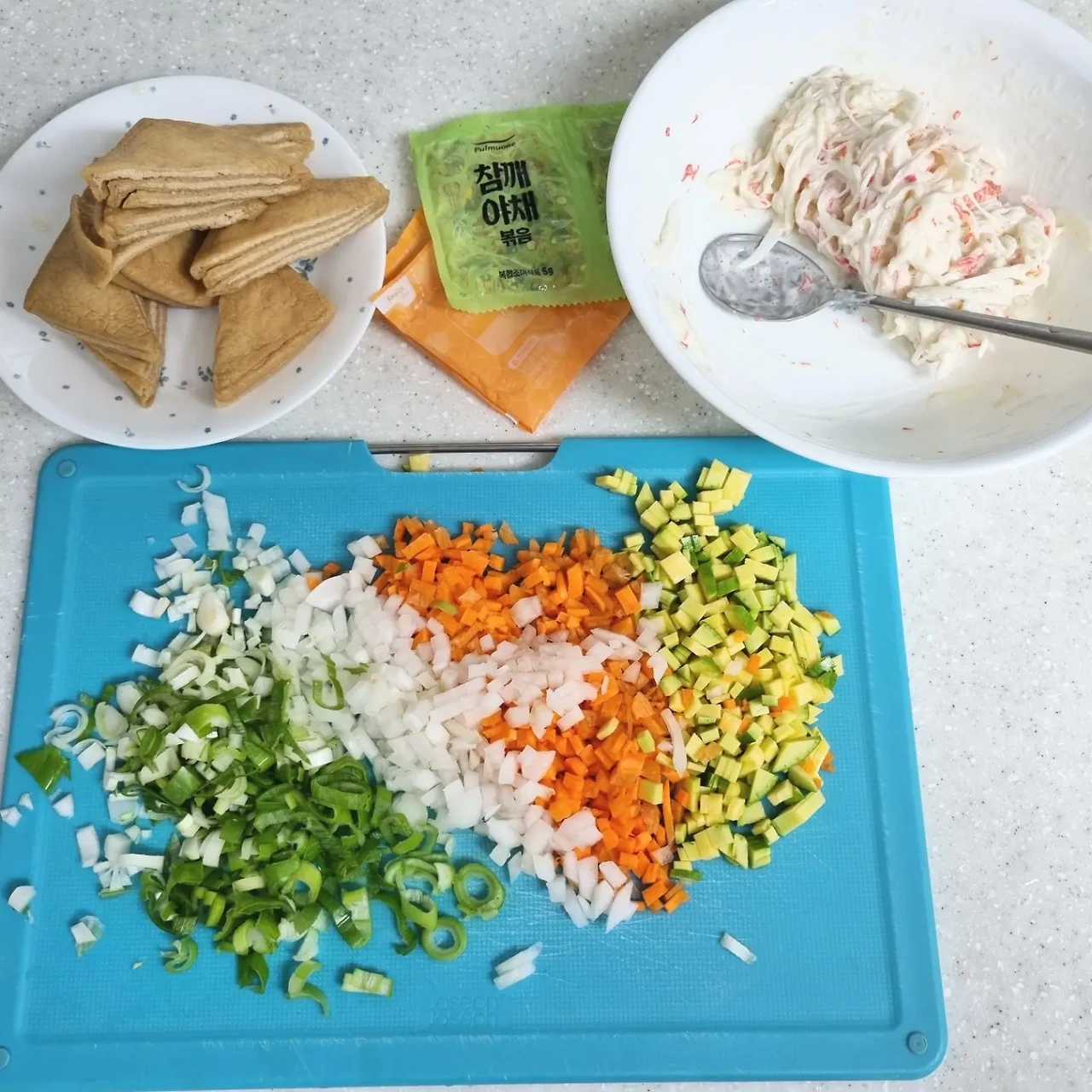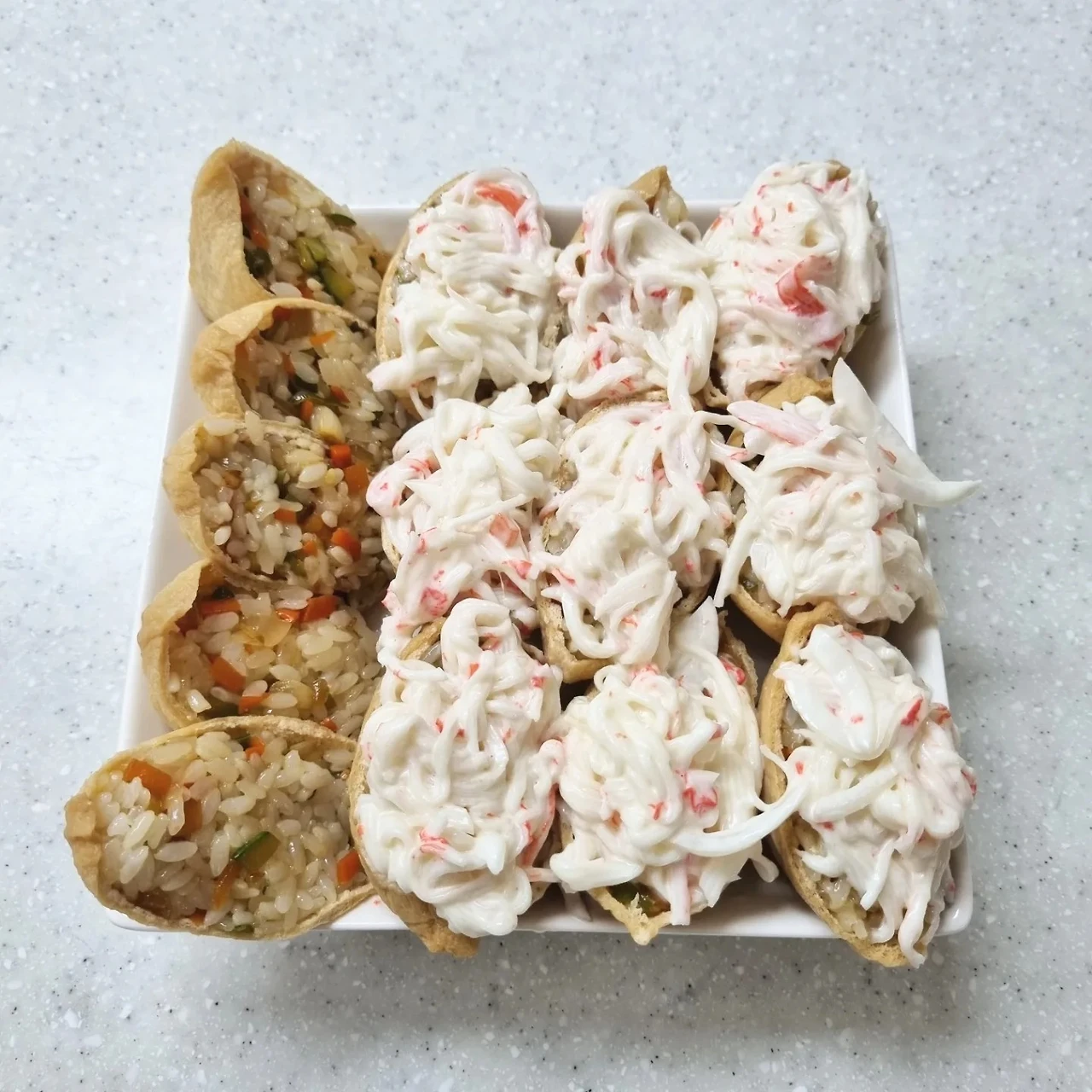 "유부초밥 했는데... 크래미도 얹었어."