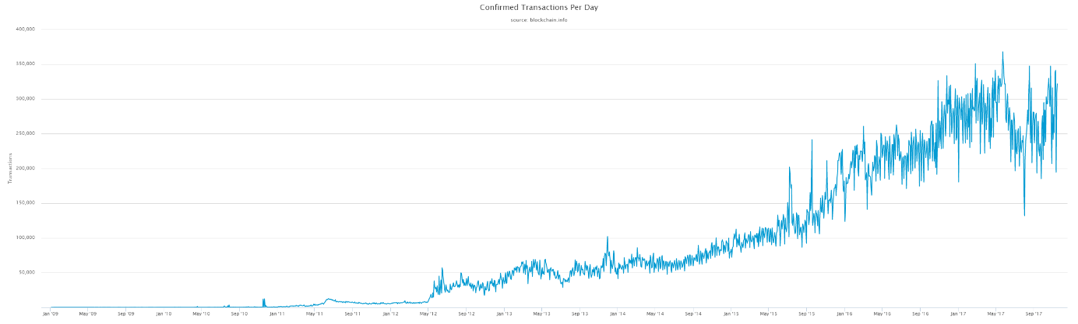 비트코인의 경우 초당 약 3~7건의거래를 처리하고, 이더리움의 경우초당 약 20건의거래를 처리한다. 이 수치는초당 약 200건의거래를 처리하는 페이팔, 약 2000건의거래를 처리하는 비자와 비교했을 때 매우 느리다.비트코인과 이더리움의 이러한처리 속도로는 더 많은 사용자가 참여했을 경우 한계가 있다. 비트코인과 이더리움뿐만이 아니다. 대부분의 암호화폐는 실제서비스로 사용하기엔 현재까지는 확장성의 한계가 분명하다.