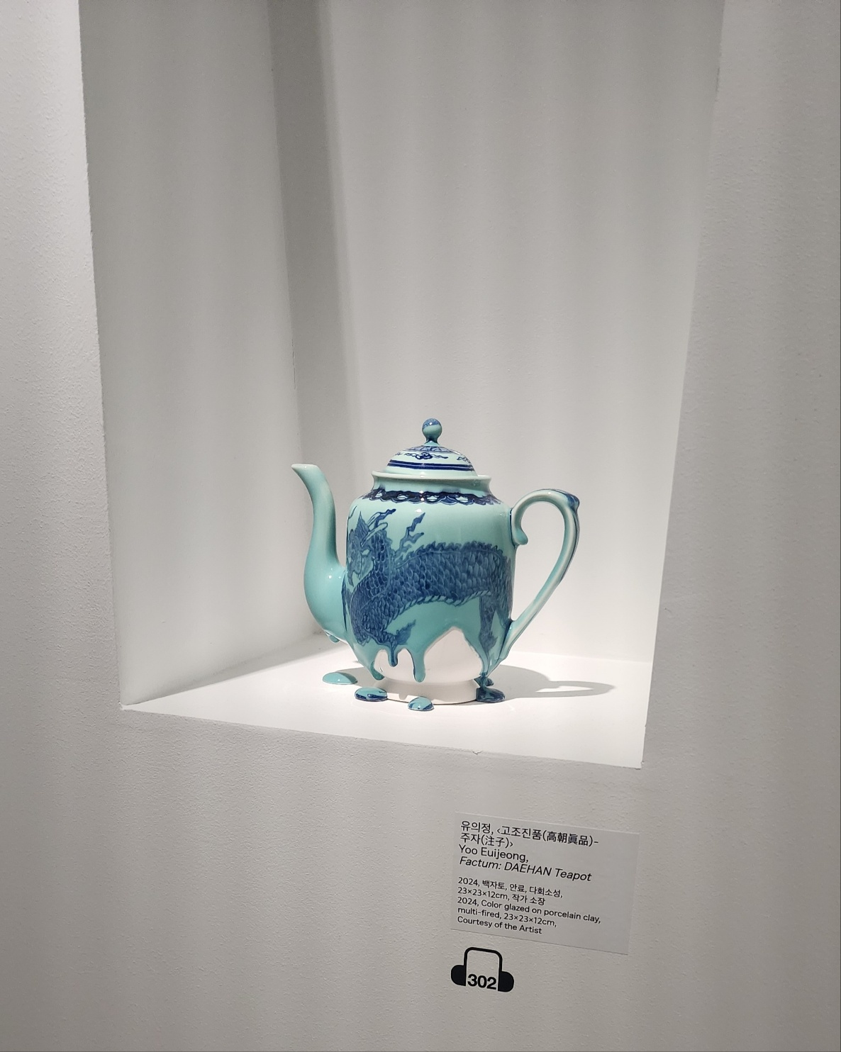 그의 개인전 ‘네이키드’, ‘금은보화’ 등을 통해 작업 세계를 탐색한 결과, 유의정 작가는 단순히 전통을 재현하는 데 머무르지 않고, 도자를 통해 사회적 은유와 인간 본질에 대한 질문을 던지는 예술가라는 점을 알게 되었다. 서울의 갤러리 지우헌과 서울시립미술관 등에서 활발히 활동하고 있으며, 그의 작업은 도자를 사유와 질문의 매체로 전환하고 있다는 점에서 독창성을 지닌다. 그는 “전통 도자기는 그 자체로 아름답지만, 그 전통을 오늘에 되살리는 건 질문을 던지는 일”이라고 말하며, 관람자에게 사유의 계기를 제공하는 것을 예술의 본질로 삼는다. 그의 대표작 ‘신-청화백자 포도문 대호’와 ‘신-백자철화 운룡문 호’는 단아한 전통 백자의 미감을 유지하면서도 유약의 흐름과 표면의 균열을 통해 운동감과 긴장감을 부여하고 있다. 이러한 형식의 해체는 전통 안에 내재된 정서와 감정을 폭발시키는 듯한 인상을 주었고, 매우 인상 깊었다.