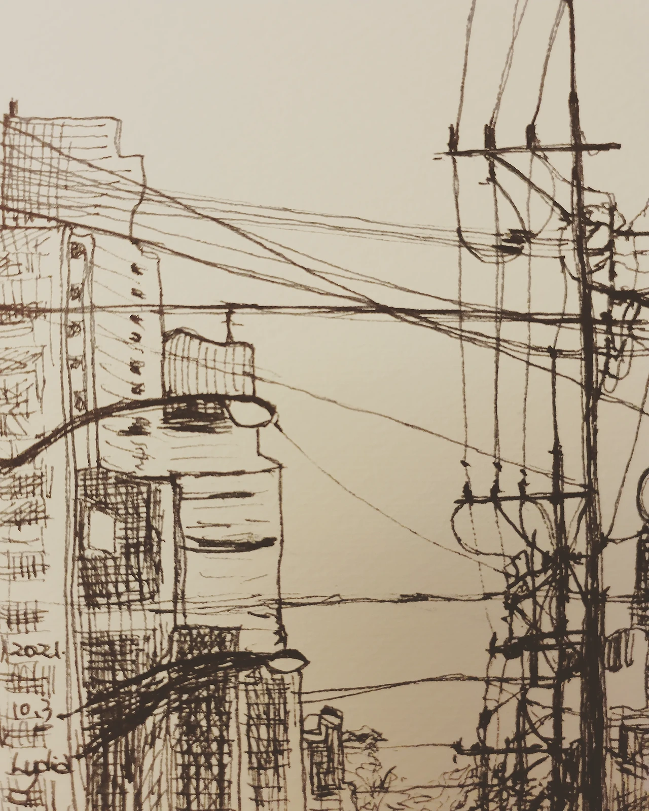 하지만 분홍빛 도는 석양을 잡을 수 있긴 했다. 어느 석양을 그릴까 고민하는 연습이다.