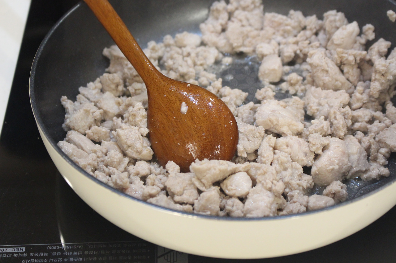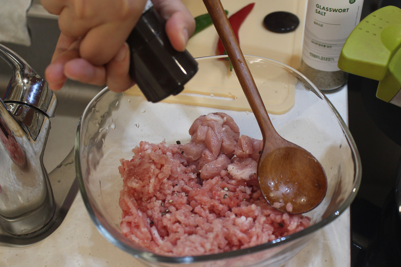 5. 돼지고기에 소금, 후추로 밑간을 해서 잘 섞어 볶아줍니다.