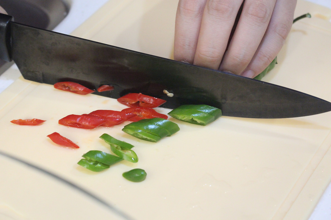 4. 대파나 쪽파, 청양고추, 홍고추도 썰어주고요
