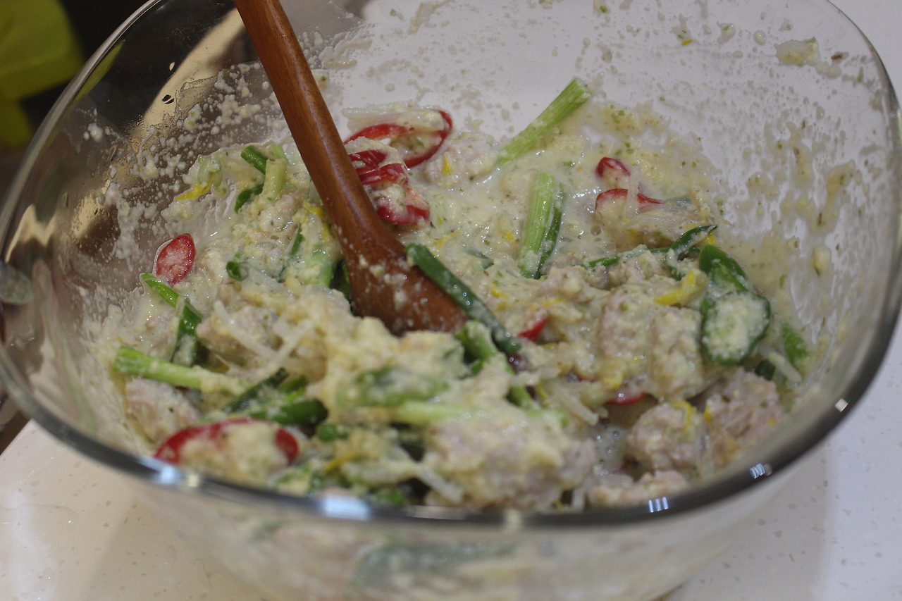 7. 모든 재료를 6번 반죽에 넣고 버무려 줍니다.