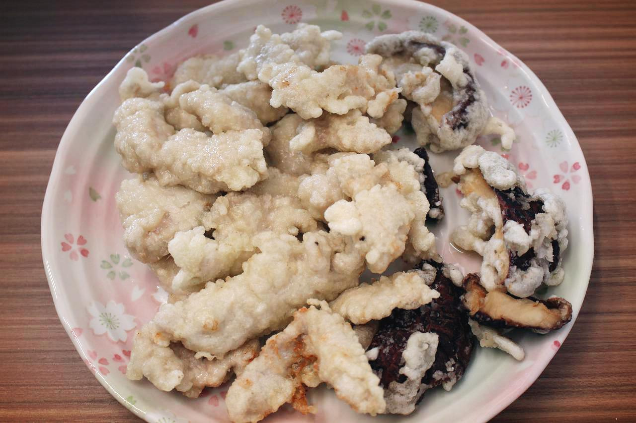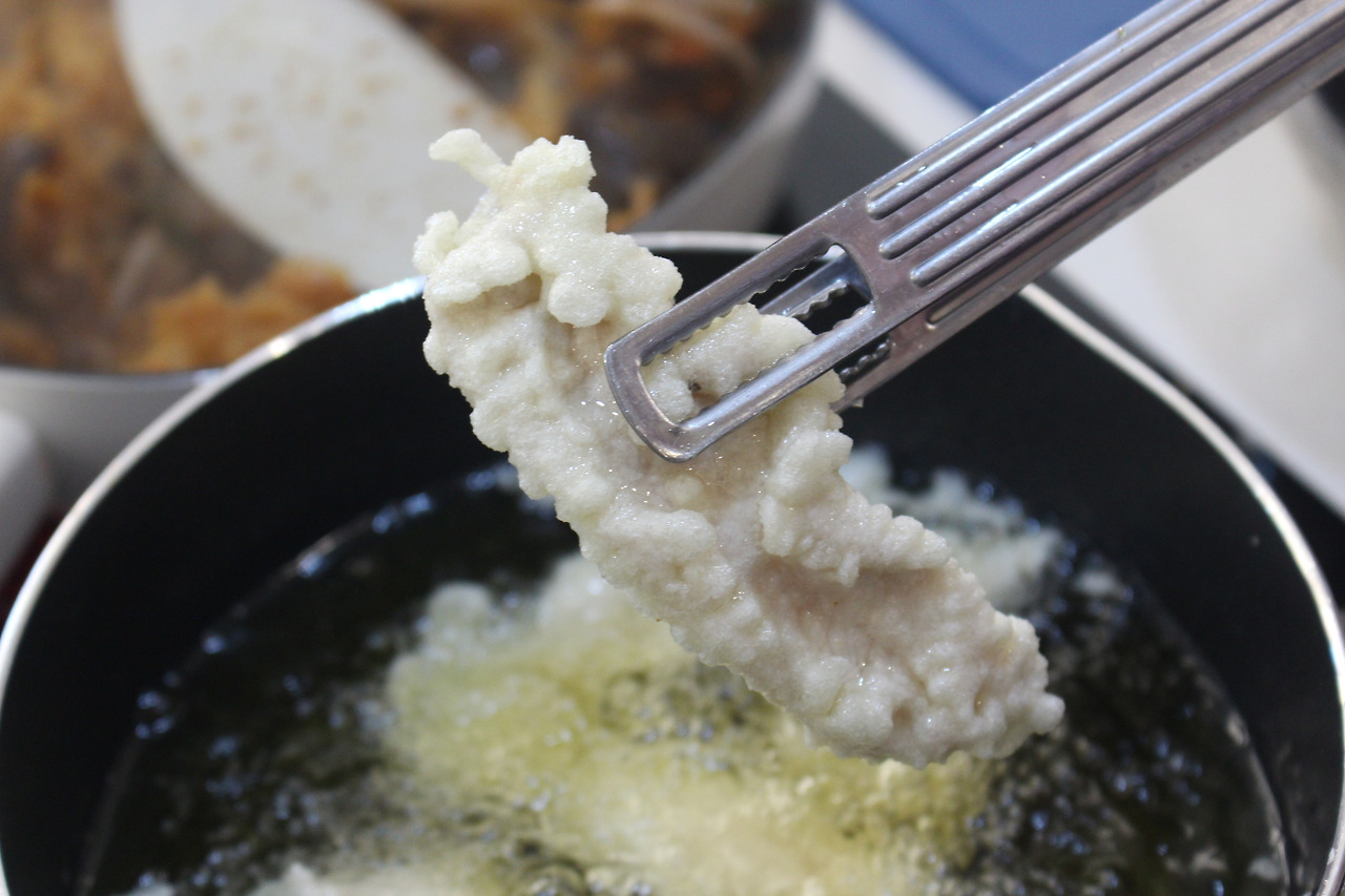 찹쌀가루와 전분 튀김옷을 입히니 하얗게 불태웠다....