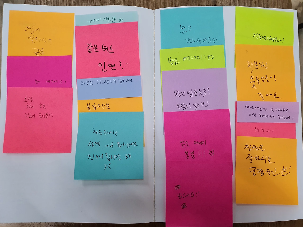 내가 없으니 허전하다고 말해주는 E에게 고마운 마음이 들었다가 문득 궁금해졌다. 나는 어떤 사람으로 기억될까? 생각이 생각에 꼬리를 물다 E, 그리고 그룹원들과 만난 첫날 포스트잇 붙이기를 했던 것이 떠올랐다.