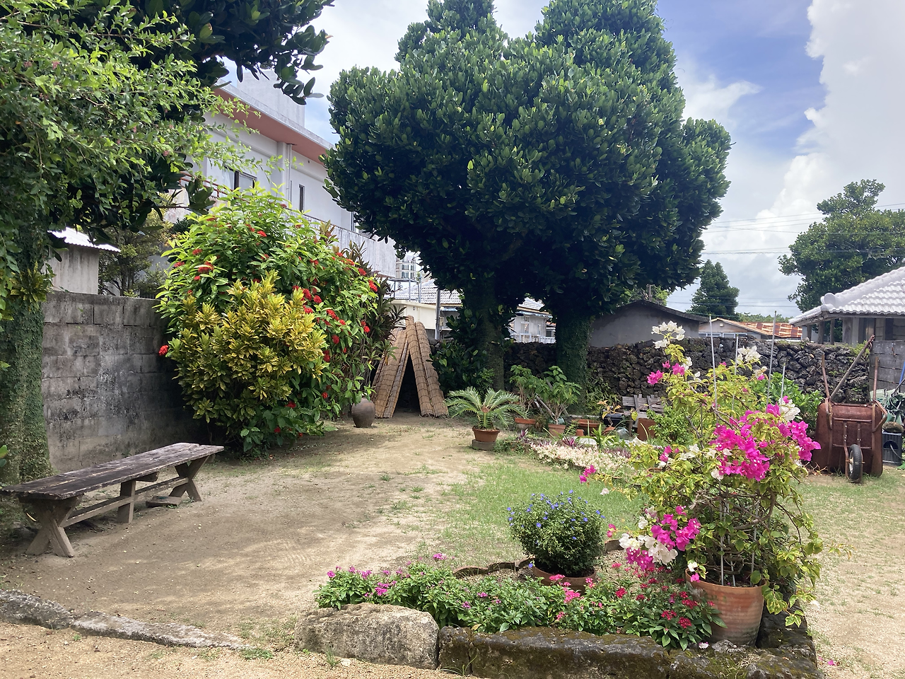 차를 렌트해서 우루마시에 있는 한 주택으로 향했다. 일부러 도심이 아닌 곳에 숙소를 구했다. 번화가가 아니라 숙박비도 저렴했고 무엇보다 마당이 있는 예쁜 집 전체를 빌릴 수 있다는 점이 좋았다. 식물과 소라게 껍데기가 가득한 멋진 정원에 연신 감탄했다.