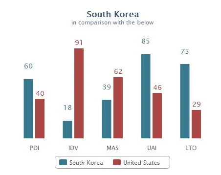 어딜 가나 한국사람들은 잘 뭉친다. 학교, 지역, 군대, 회사, 동호회 등 뭉치는 이유도 다양하다. 이것은 홉스테드(Hofstede) 연구에서 말하듯이 한국의 ‘집단주의’ 성향이 매우 강하기 때문인 것 같다(한국 개인주의(IDV) 지수는 18로 미국의 91과 확연한 차이). 이러한 ‘집단주의’ 문화는 ‘나’ 보다는 ‘우리’라는 집단에 초점이 맞춰진다.