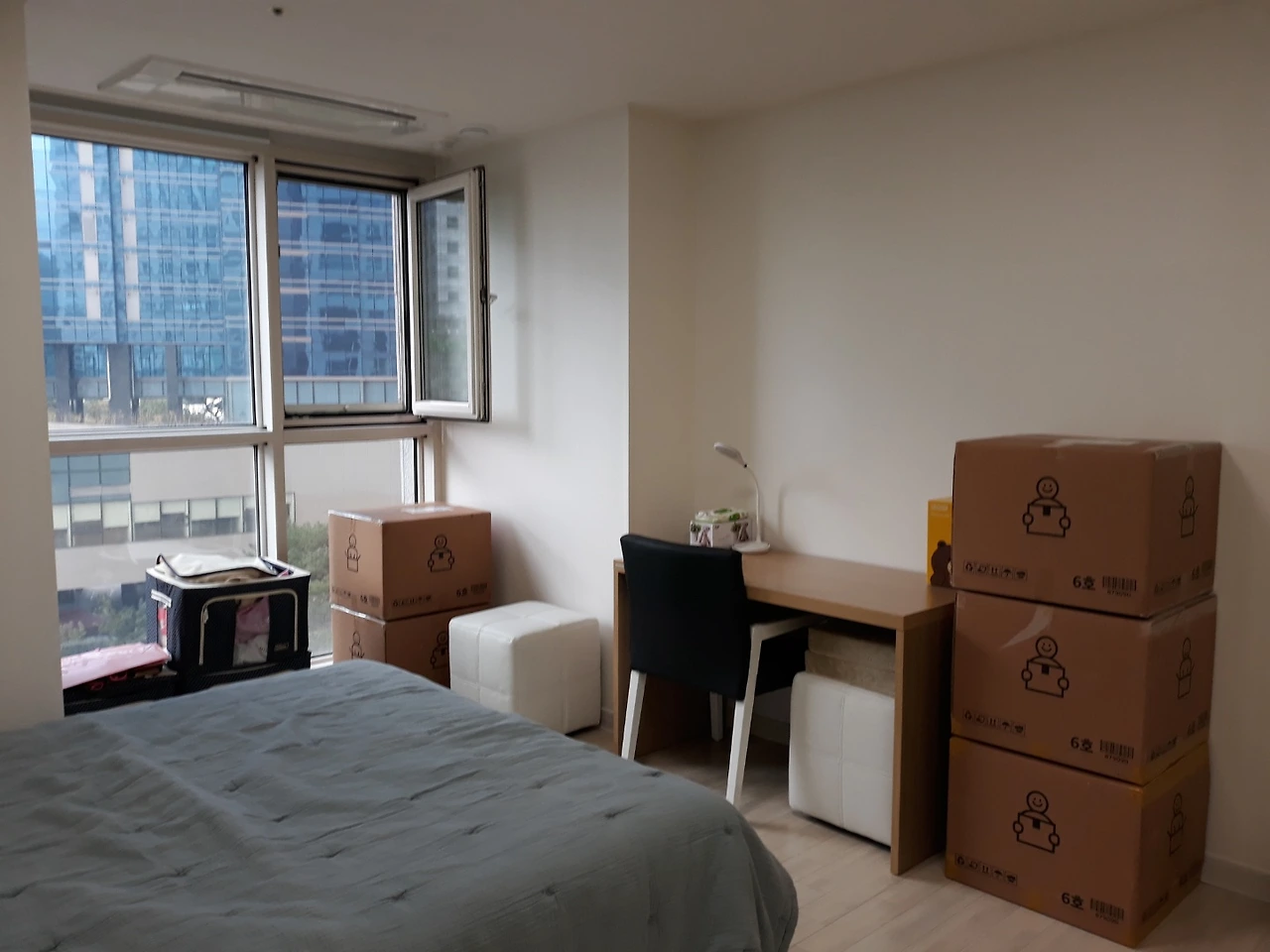 싸운 게 무색하게도 집은 아무 문제없이 아주 좋아서 바로 계약을 진행했습니다. 남향이기도 했고, 화이트톤 인테리어로 깔끔하고 공간활용이 좋은 방이었습니다. 전용면적 8평, 공급면적 17평 정도로 좁지 않고 혼자 살기에 딱 적당한 편이었고요. 5분만 걸어나가면 해운대 바다가 펼쳐져 있는 멋진 곳이었습니다.