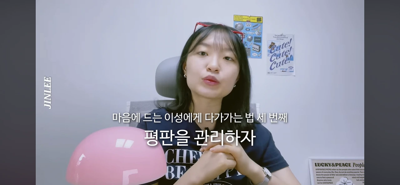 이제 진짜 세 번째를 말하려고 하는데요. 제가 이 분이 금사빠이신지 아닌지는 모르겠고, 어느 정도 기간 동안 호감을 가지신 건지도 알 수 없고, 두 분 사이에 교류를 할 만한 게 있는지도 모르겠는데, 진짜 상대방에게 잘 보이고 싶은 마음이 있고, 뭔가를 시도할 만큼 강한 마음이 있다. 그러면 저는 세 번째로 평판 관리를 하시라고 이야기를 하고 싶어요. 갑자기 이게 무슨 소리? 싶기도 할 텐데, 제가 생각했을 때는 지금 이렇게 부딪힐 일이 없으면 어차피 모든 과정이 부자연스럽거든요. 그렇기 때문에 메신저를 하신 것처럼 아예 직접적인 행동이 아니면 할 수 있는 게 별로 없어요. 근데 직접적인 행동은 100%, 아니 200% 부담스러울 거란 말이에요? 상대방도 평소에 나에게 호감을 갖고 있는 게 아니라면?