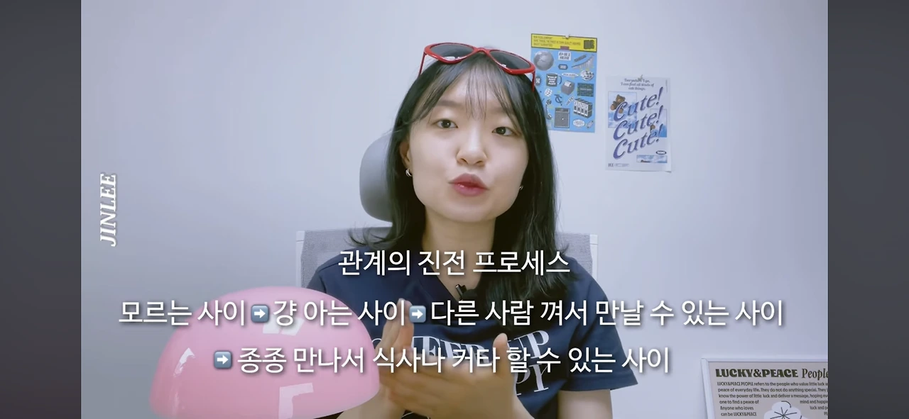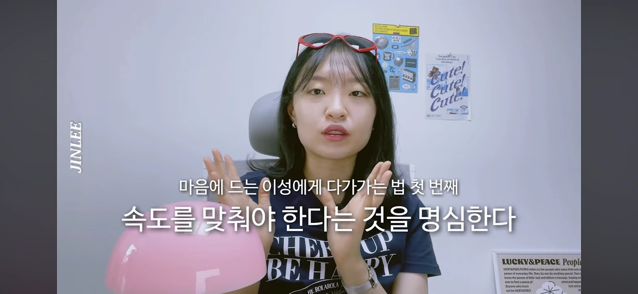 왜 상대가 부담을 느끼게 하면 안 되냐면, 부담감이라는 감정이 나머지를 다 가려버리거든요. 이 사람 좋은 사람이구나, 이 사람 이런 면이 있구나 그걸 알게 해줘야 하는데, ‘부담스러워...’ 하는 생각을 하면 그 모든 게 무용지물이 됩니다. 그래서 참아야 해요. 참아! 상대보다 딱 한 발 정도만 앞서서 ‘혹시 따라오겠니?’ 하는 정도만 하는 거죠. 혹시 상대가 어떠한 행동을 하더라도 보수적으로 판단하고요. 누가 봐도 호감 있는 행동이면 나도 해석할 필요 없이 알잖아요. ‘어? 나한테 웃어줬는데? 이거 그린라이트야?’ 이거 안 돼요. 좋은 대로 해석 금지. 깔끔하게 행동해야 합니다.
