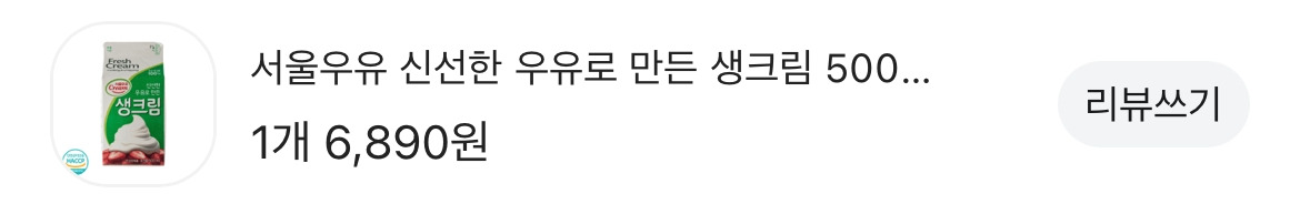 이번 요리에 쓰인 재료는 대부분 배달의 민족 B마트에서 구매했습니다. 대파, 마늘, 생크림, 레몬즙을 다 합쳐서 15000원 정도에 구매했어요.