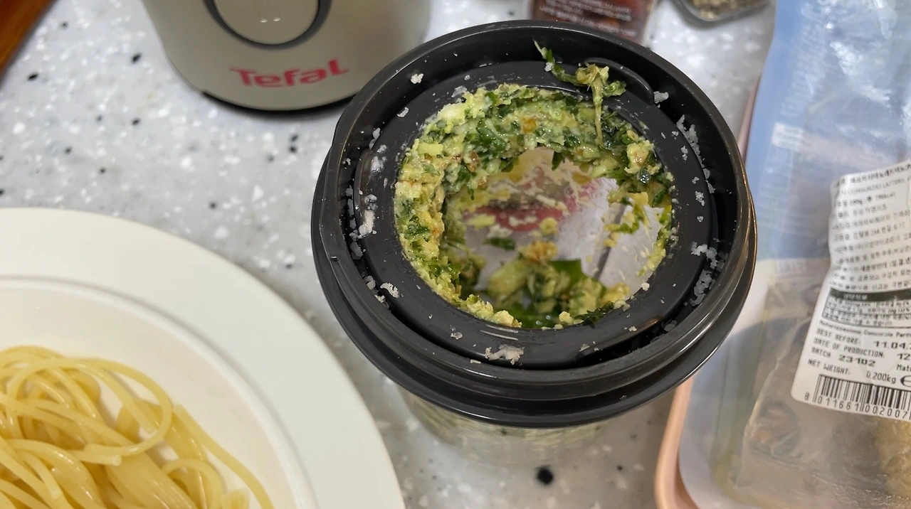 믹서로 갈다 보면 뻑뻑한 느낌이 들기도 하고 맛을 보면 간이 안 맞기도 합니다. 샘킴 셰프님 말씀에 따르면 맛을 보면서 내가 원하는 맛을 좀 더 추가해 주며 밸런스를 맞추면 된다고 해요. 올리브유를 넣는 것도 걱정 마세요. 파스타와 섞어줄 거니까 올리브유가 충분해도 괜찮답니다. 소금이나 후추도 함께 사용해서 간을 맞춰 줍니다.