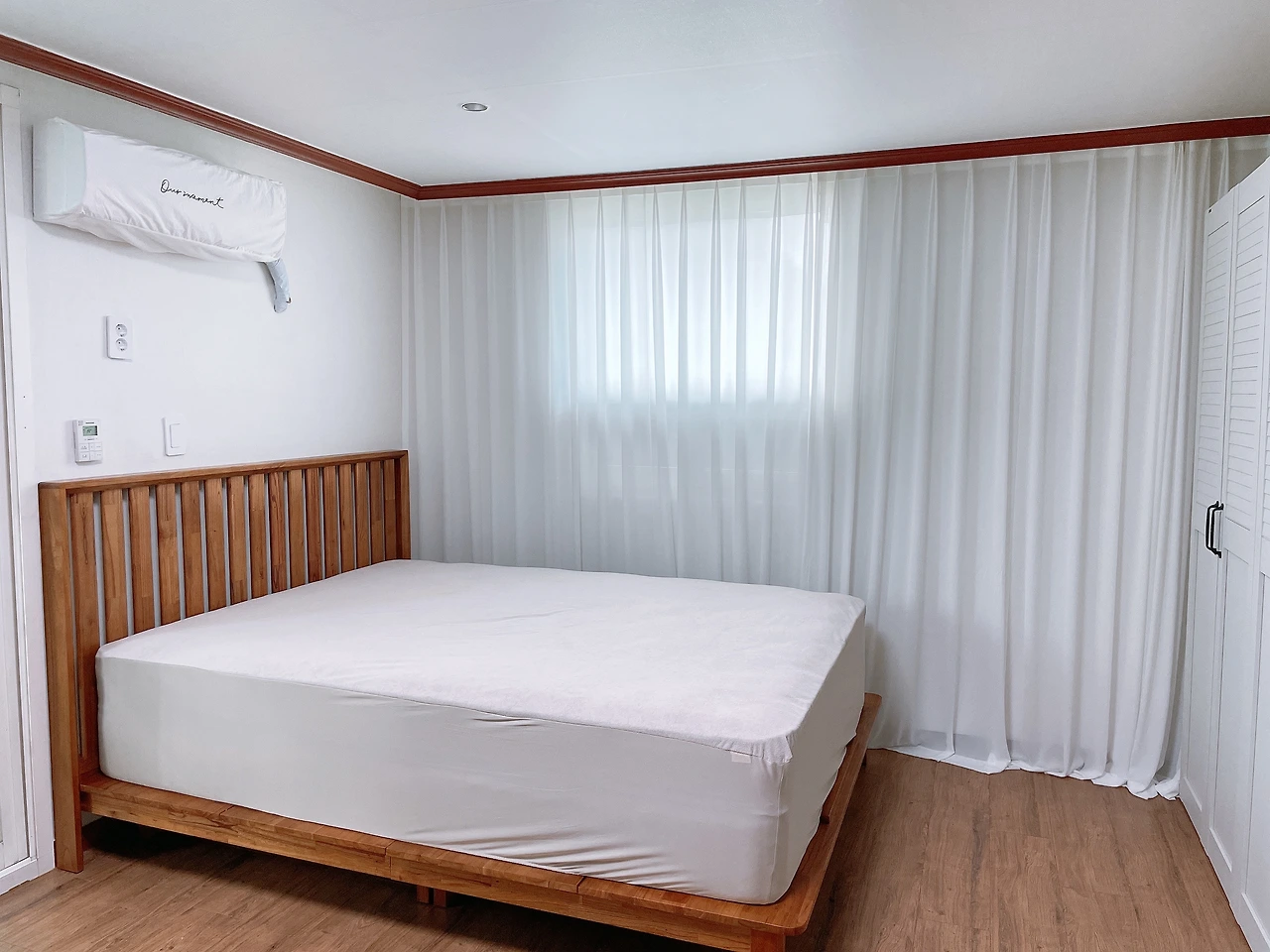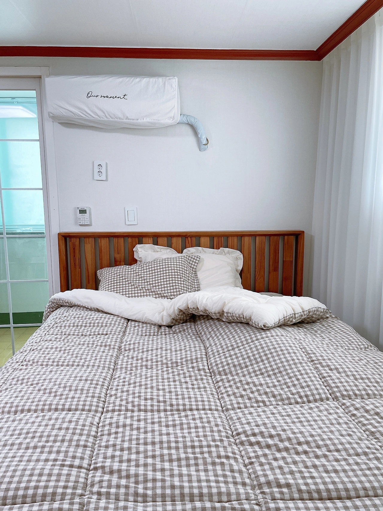 확실히 매트만 있을 때보다는 안정적인 느낌이 듭니다. 하지만 매트리스만 두니 생각보다 매트리스 커버가 정리가 잘 안 되었습니다. 게다가 매트리스만 두면 여름과 같이 날이 습하고 더울 때 매트리스 하단에 곰팡이가 필 수 있습니다. 따라서 깔판을 깔아주거나 침대 프레임을 설치하는 것이 좋다고 합니다.