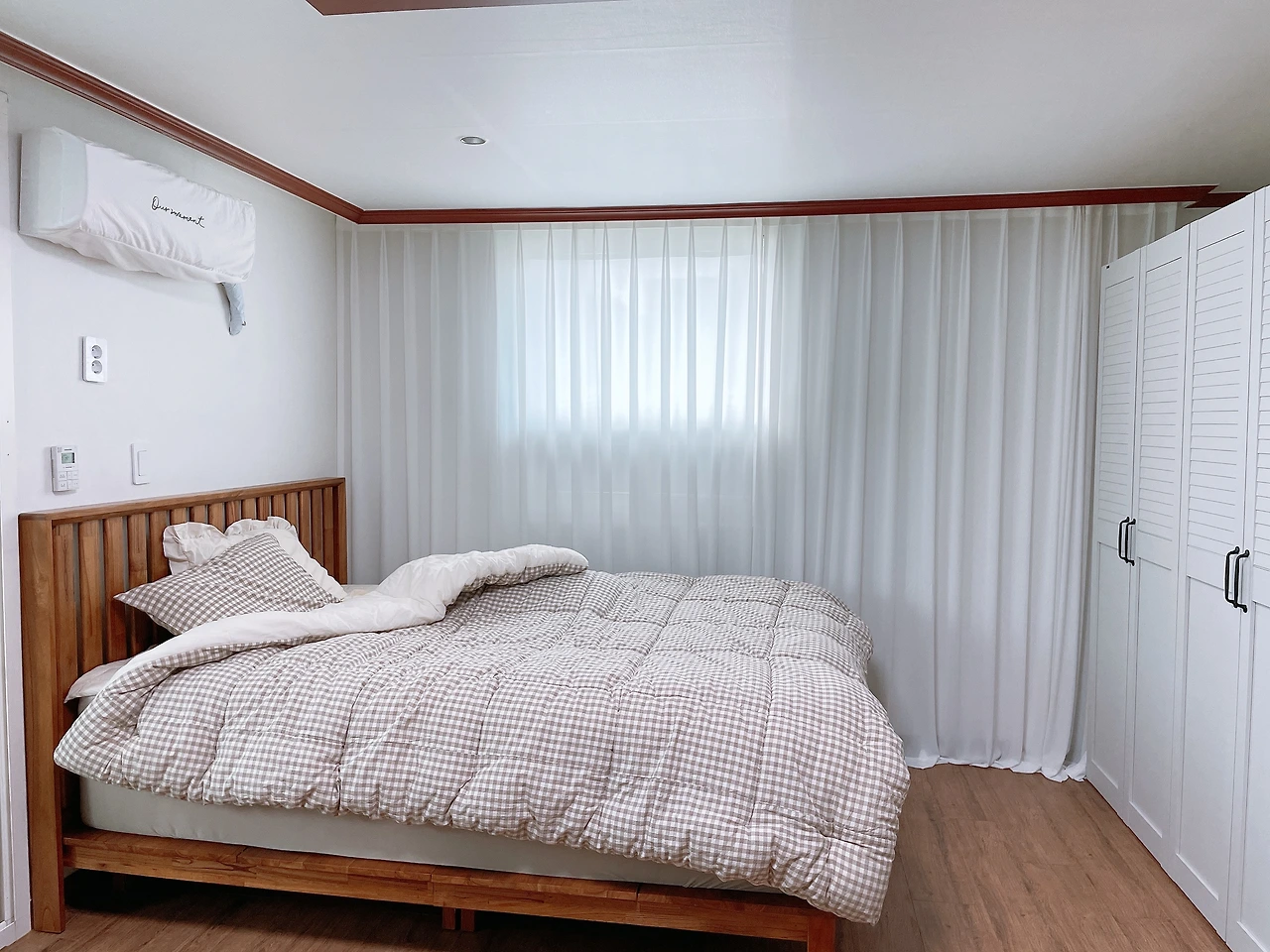 2. 옷장이 있는 상태에서 침대 프레임 설치 전후 비교