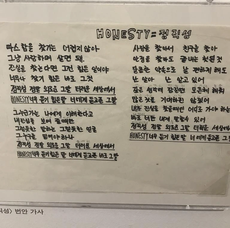 박이소(1957-2004), 정직성 - honesty 번안 - 박이소 작가님이 직접 부른 정직성은 꼭 들어봐야한다. 가사 그대로가 살을 뚫고 내부로 찔러들어오는 느낌.