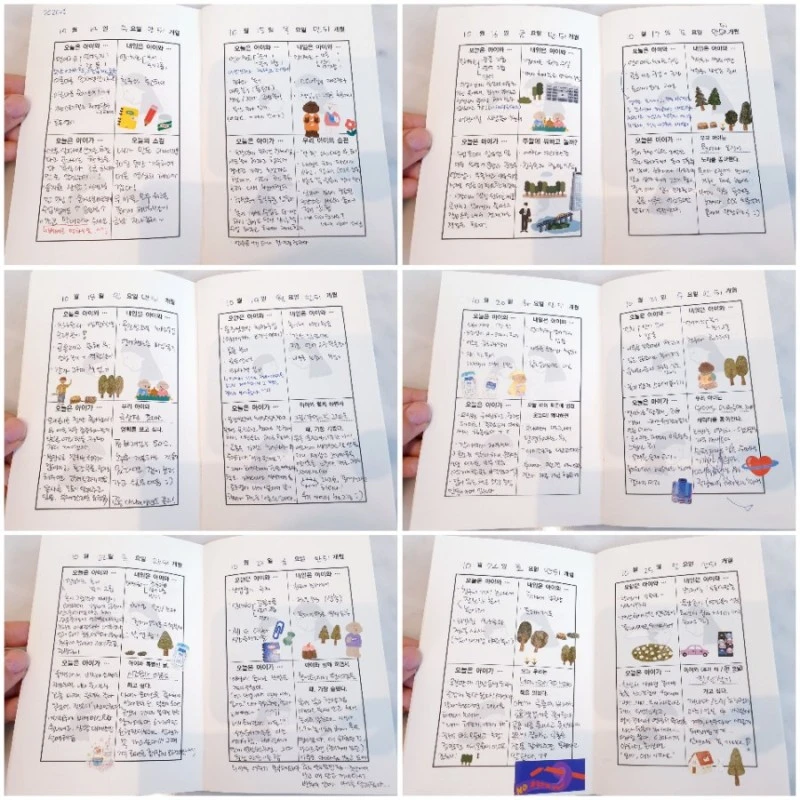 언어 치료를 시작한 지 4개월이 지났을 때, 내가 아이의 언어 자극을 위해 딱 한 달 동안 집에서 한 게 있다. 바로 식탁 위에 다이어리를 놓고 아이와 오늘 함께 한 언어 놀이 활동을 적은 것이다. 아이와 같이 읽은 책 제목과 어떤 스티커북, 학습지, 문제집을 함께 풀었는지 기록을 해 두었다.