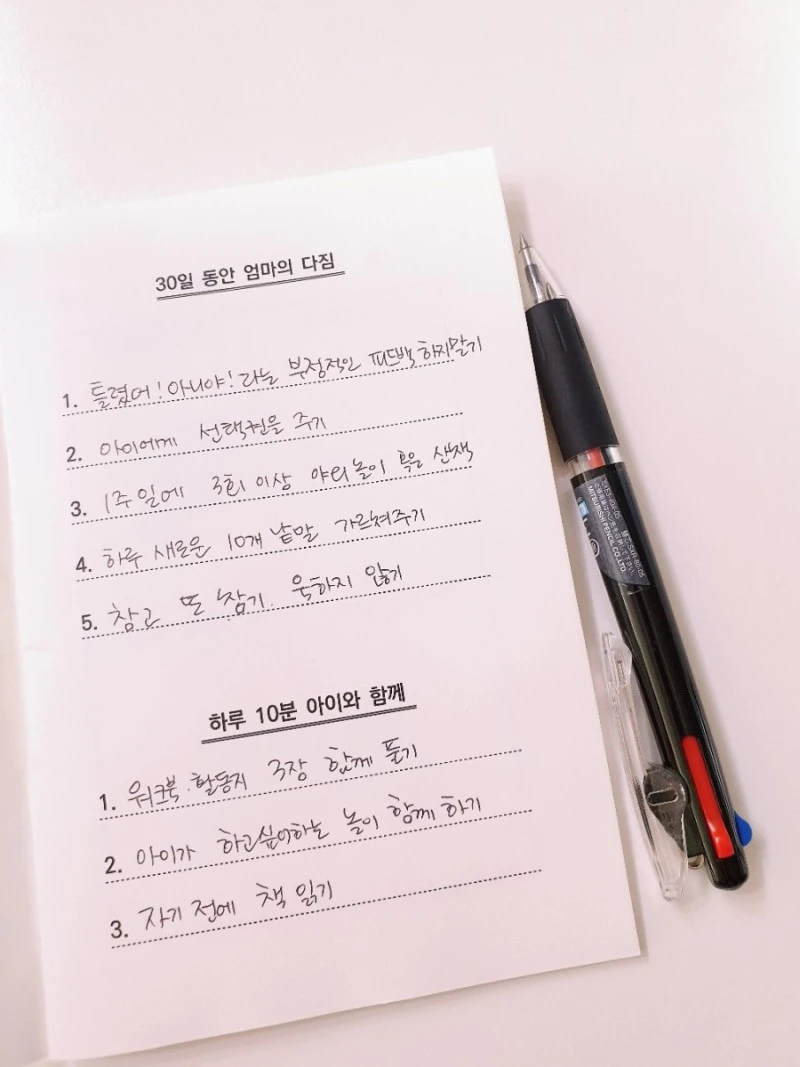한 달을 다이어리에 적으며 매일 아이와 뭔가를 함께 하려고 노력했더니, 어느 순간부터 아이와 하루에 한 가지 이상 언어 놀이 활동을 하는 것이 우리의 습관이 되었다.