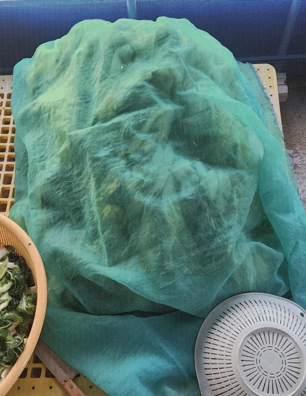 우리 집(정확히는 친정)은 김장을 큰 비닐하우스 안에서 한다. 추위와 눈비 등이 내려도 피할 수 있을뿐더러 수도시설이 있어 몇 날며칠 배추를 씻고 건져서 보관하기에 안성맞춤이다.