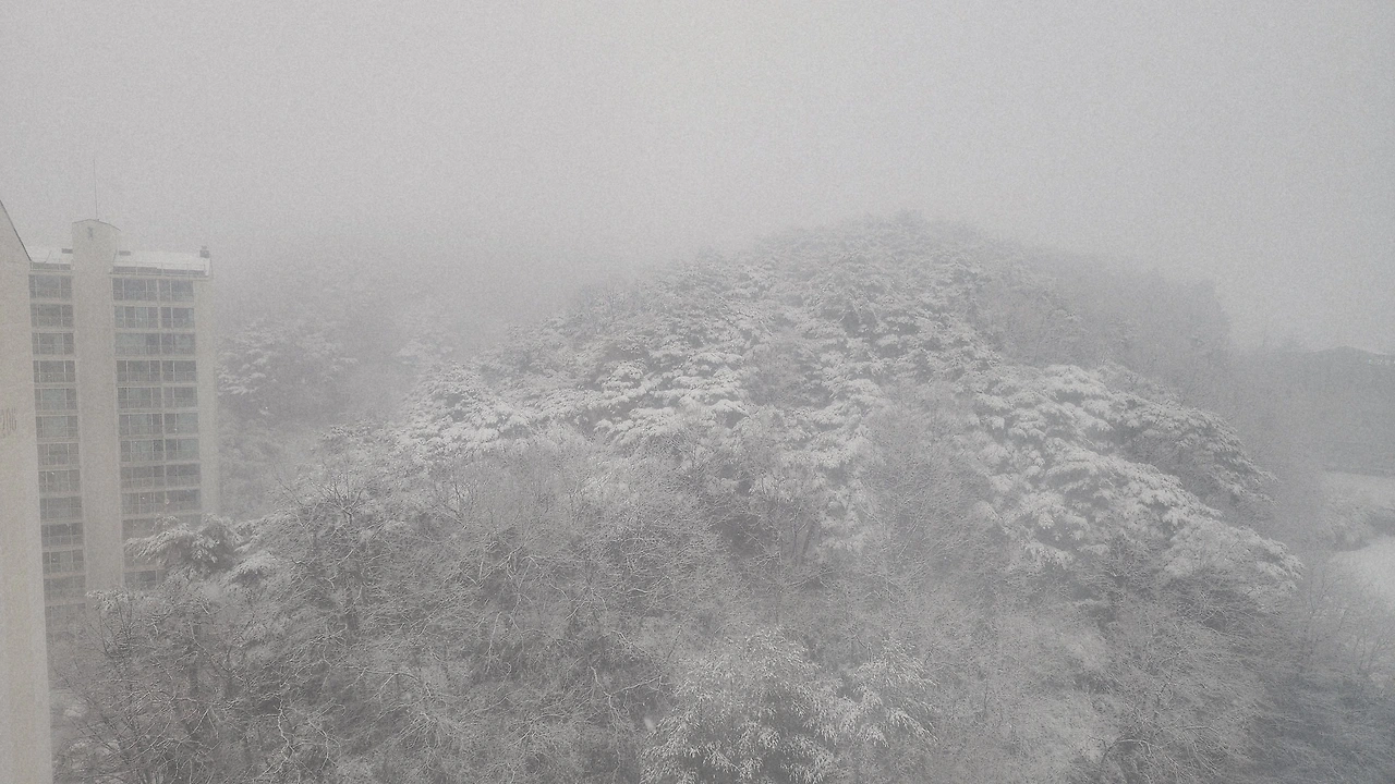 작은 애의 생일날 아침, 창밖은 온통 새하얀 눈이 빠르게 꽤 많이 내리고 있다. 연휴 기간 중 이날 강릉에는 오전 80%, 오후 70% 확률로 눈예보가 되어있었는데 잘 맞았다.
