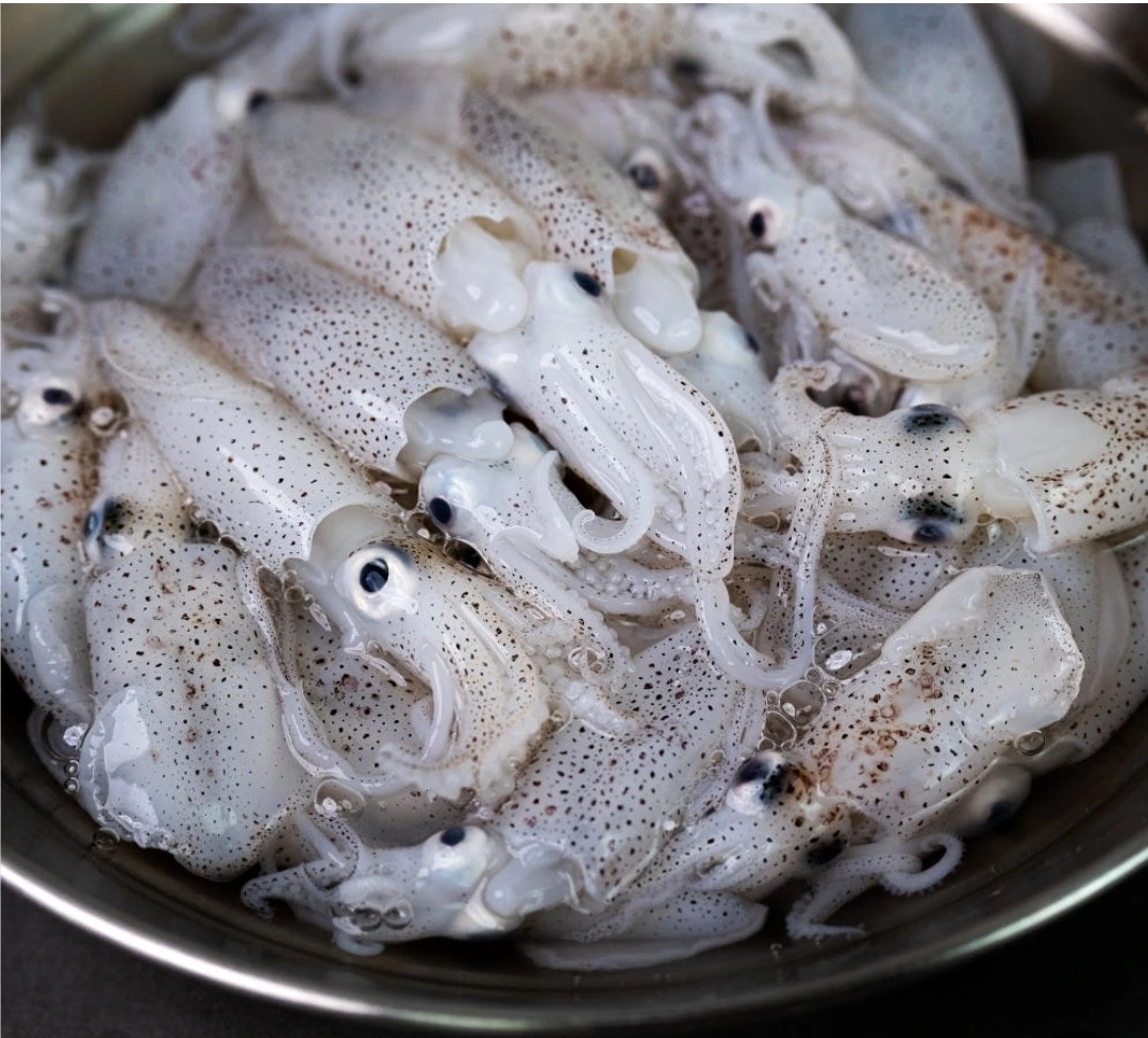 크기는 어른 손가락 하나만큼의 길이라서 한 입에 쏙 할 정도, 투명비닐 옷을 입은 것처럼 매끈함을 뽐내는 꼴뚜기는 신선할 때 초장에 찍어서 먹으면 바다의 비릿함과 짠내가 이 사이로 퍼져 나가는 매력이 있다.