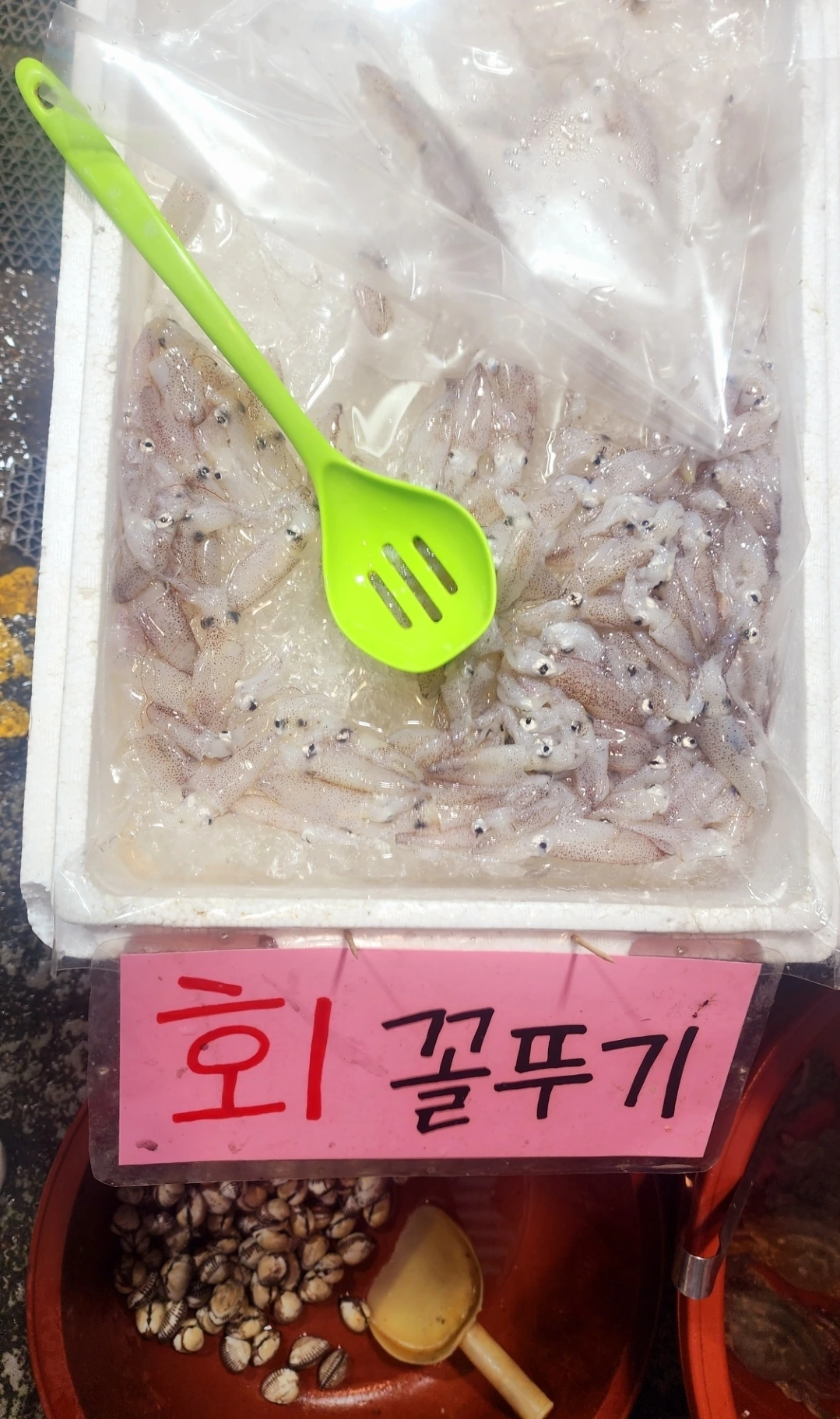 큰 애와 함께 간 동네 재래시장에서 파는 것을 보고는 "어? 저거 어디서 많이 봤는데?" 하던 참에 떠억 하니 쓰여있는 '꼴뚜기'라는 글자를 본 것이다. 덕분에 오랜 궁금증을 해결했다.