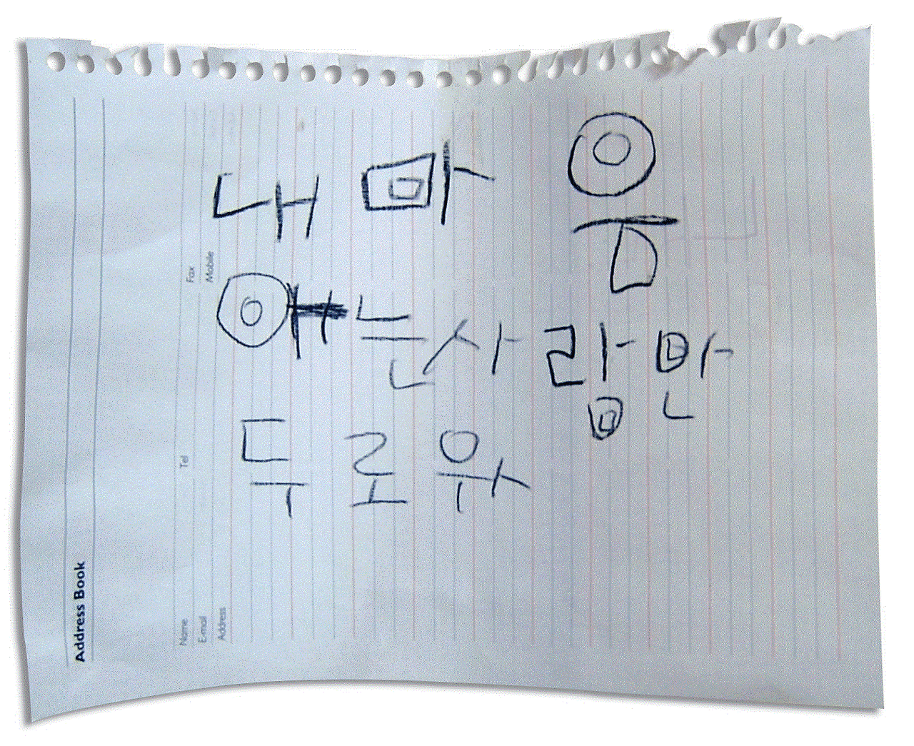 오래전 예닐곱 살 정도 먹은 조카가 방문 앞에 붙여둔 글귀입니다. 20년이 훌쩍 지나 삐뚤빼뚤 한글을 썼던 조카는 어엿한 성인이 되었죠. 조카가 크는 동안에도 내내 그때 본 저 글귀를 잊을 수 없었습니다.