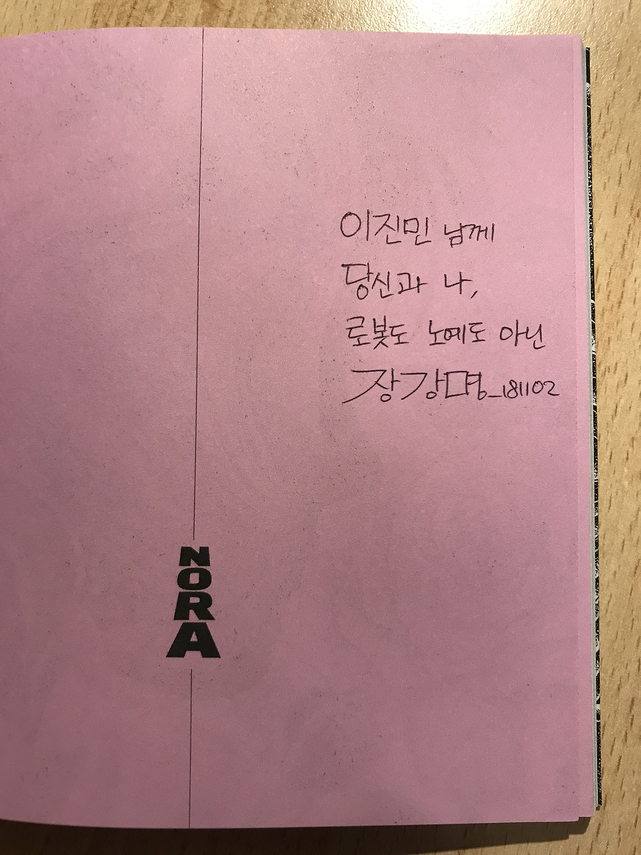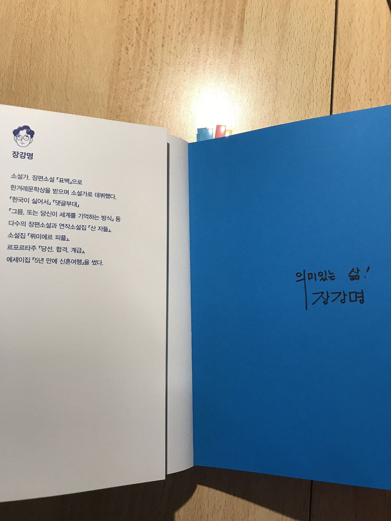 장강명 폰트가 나와야 되지 않나 싶은 사랑스러운 글씨체의 사인이 든 책을 그렇게 또 받고 말았다. 장작가의 동생과 나는 귀애하는 사이다(그녀의 마음이 변치 않았다면). 책 속 표현을 빌자면 ‘읽고 쓰는 인간 종족’인 내가, 평생 읽어만 오다 책 한 권을 갓 써낸 내가, 딱 타이밍 좋게 만난 책이었다. ‘책, 이게 뭐라고’까지는 감히 가지 못하고 ‘책, 이것은 무엇인가’ 그 언저리에 생각이 머물던 시기였다.