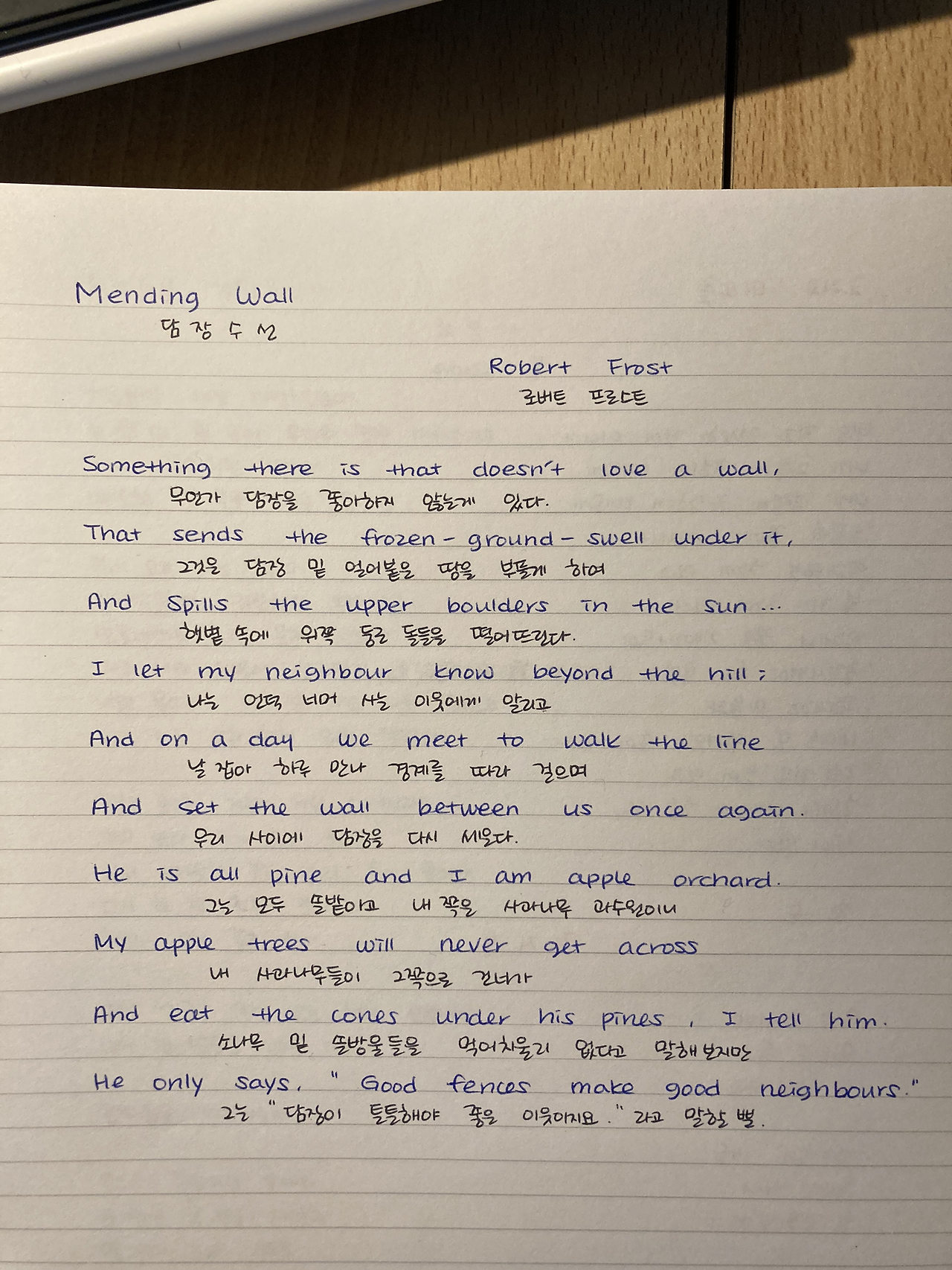 로버트 프로스트(Robert Frost), '담장 수선(Mending Wall)'