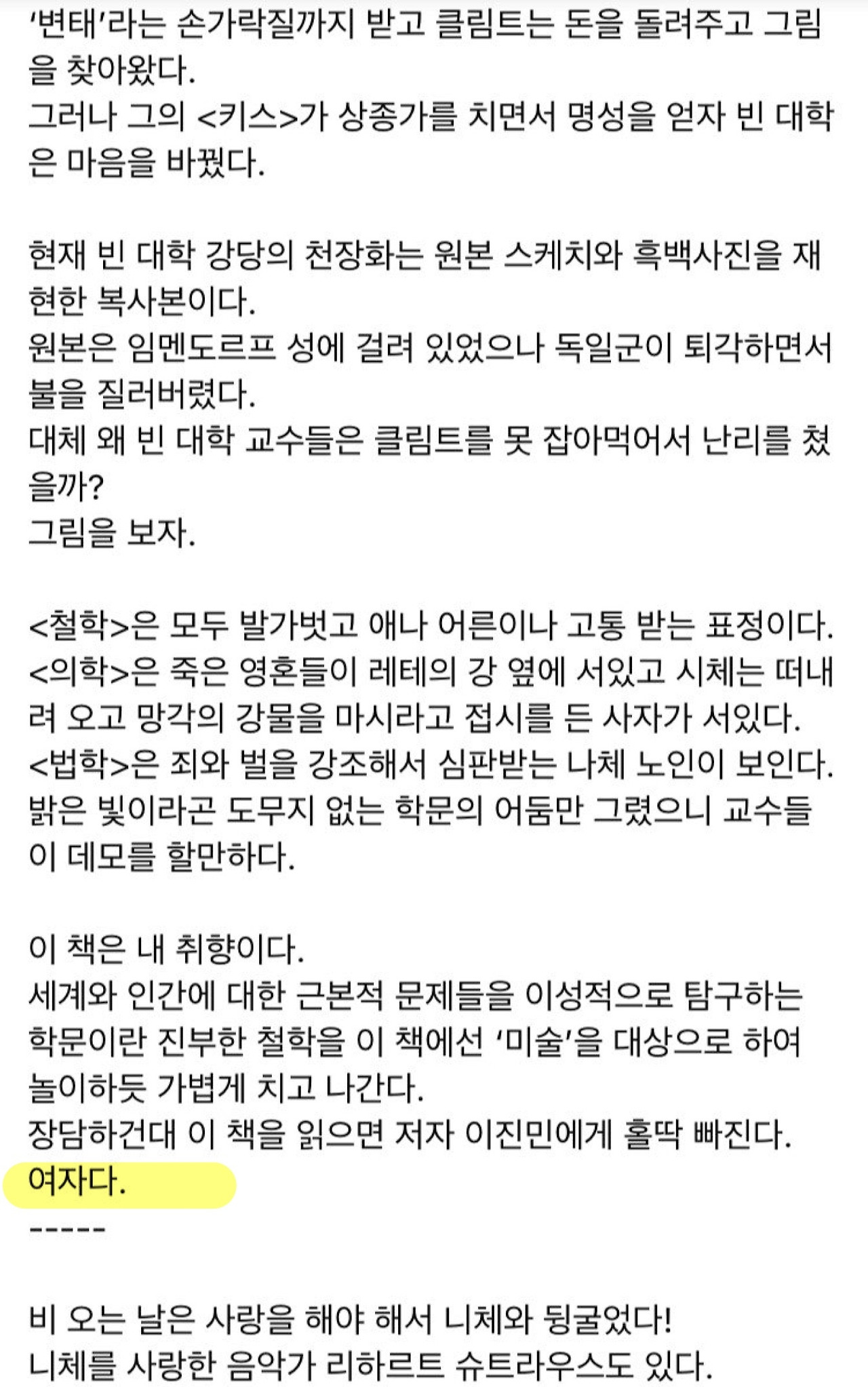 1) 먼저, 저의 지인이 수줍어하며 댓글 사이에 쑤셔 넣어 둔 감상.