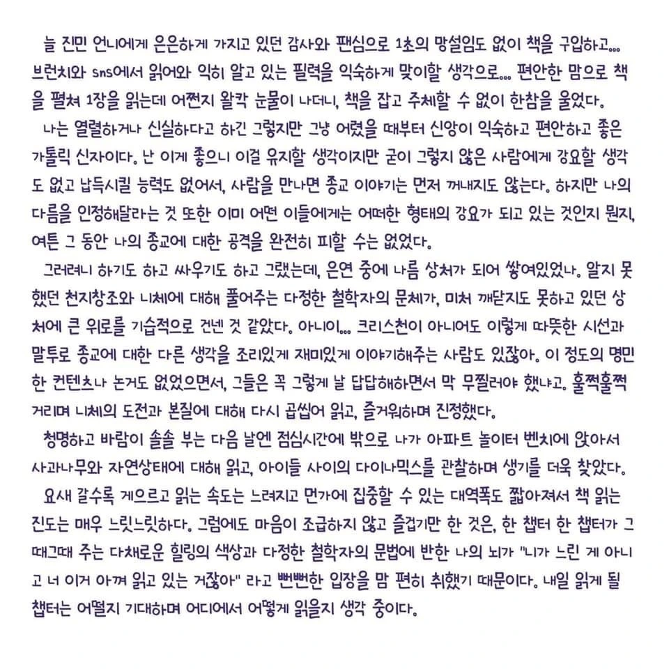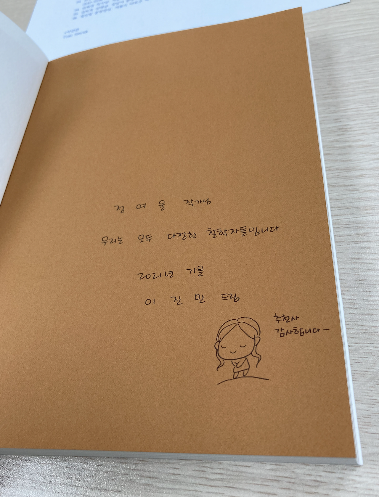 이곳에서 받은 응원도 어마어마하죠. 사실 세상은 철학자들만 좀 다정하면 되는 거였나 싶게 세상에는 다정한 분들이 많음을 느낍니다. 고맙습니다.
