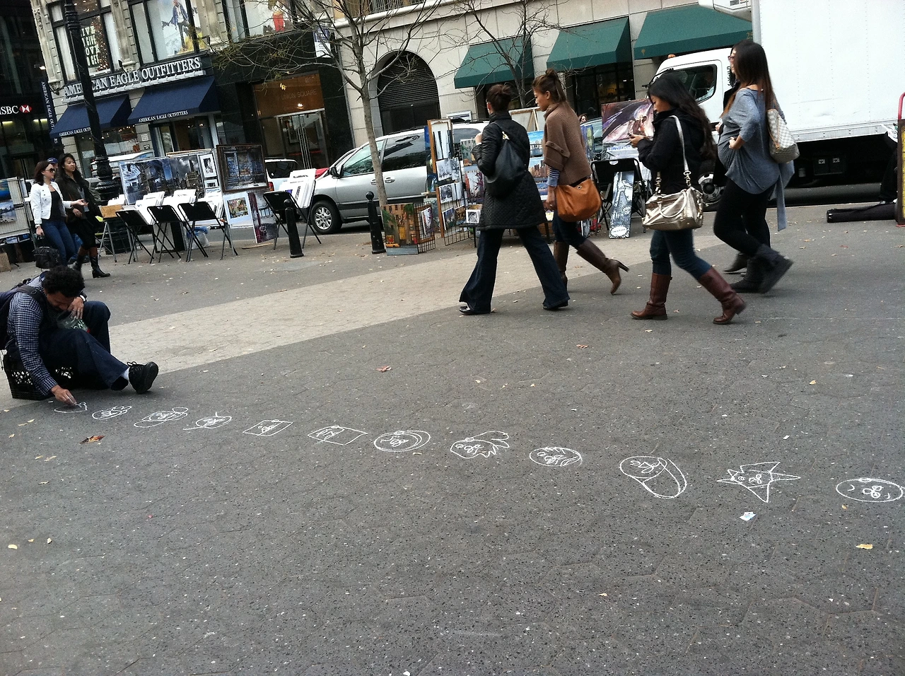 그렇게 꾸역꾸역 학기를 쌓아가던 어느 겨울, 휴스턴에서 유학 중이던 성희가 크리스마스를 맞아 놀러 왔다. 우리는 뉴욕 여행을 계획했다. 성희는 캐리어를 끌고 나는 그냥 조그만 가방을 들고 갔던 걸 보면, 성희는 좀 더 머무르거나 다른 곳으로 여행을 지속할 예정이었고 나는 당일치기였던 것 같다. 우리는 곧 반가운 얼굴을 만나게 될 거라는 말랑한 마음으로 공원에 울려 퍼지는 피아노 선율을 즐겼고, 거리의 예술가가 하나씩 조그맣게 그려 내려가는 얼굴들을 구경했다.