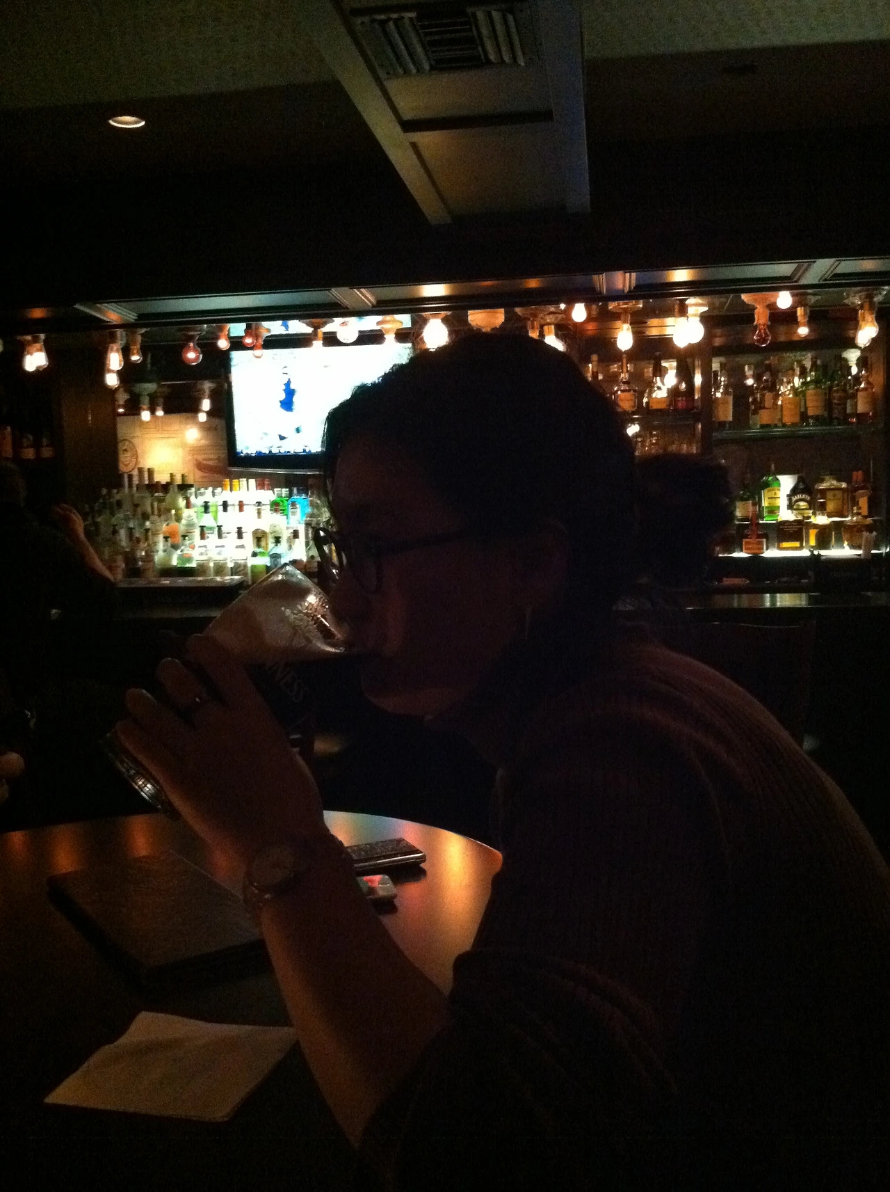 당시 뉴욕에서 공부하던 영환이가 합류했다. 이름은 알았지만 만나서 이야기를 오래 나눈 건 처음이었는데, 세상에 이렇게 무해한 사람이 있나 싶었다. 돌아갈 버스 시간이 정해져 있던 나 때문에 우리는 근처에서 시간을 보내기로 했다. 전체적으로 노란 조명이 어둡고 테이블마다 촛불을 켜 놓은 아늑한 바에서 우리는 거품이 부드럽게 올려진 기네스와 오렌지 조각을 달고 나온 블루문을 마셨다. 그렇게 행복한 노가리 속에서 저녁이 찾아왔다. 나는 돌아가야 했고, 다른 친구들에게는 오빠가 2차로 집에 가서 삼겹살을 구워주기로 했다.