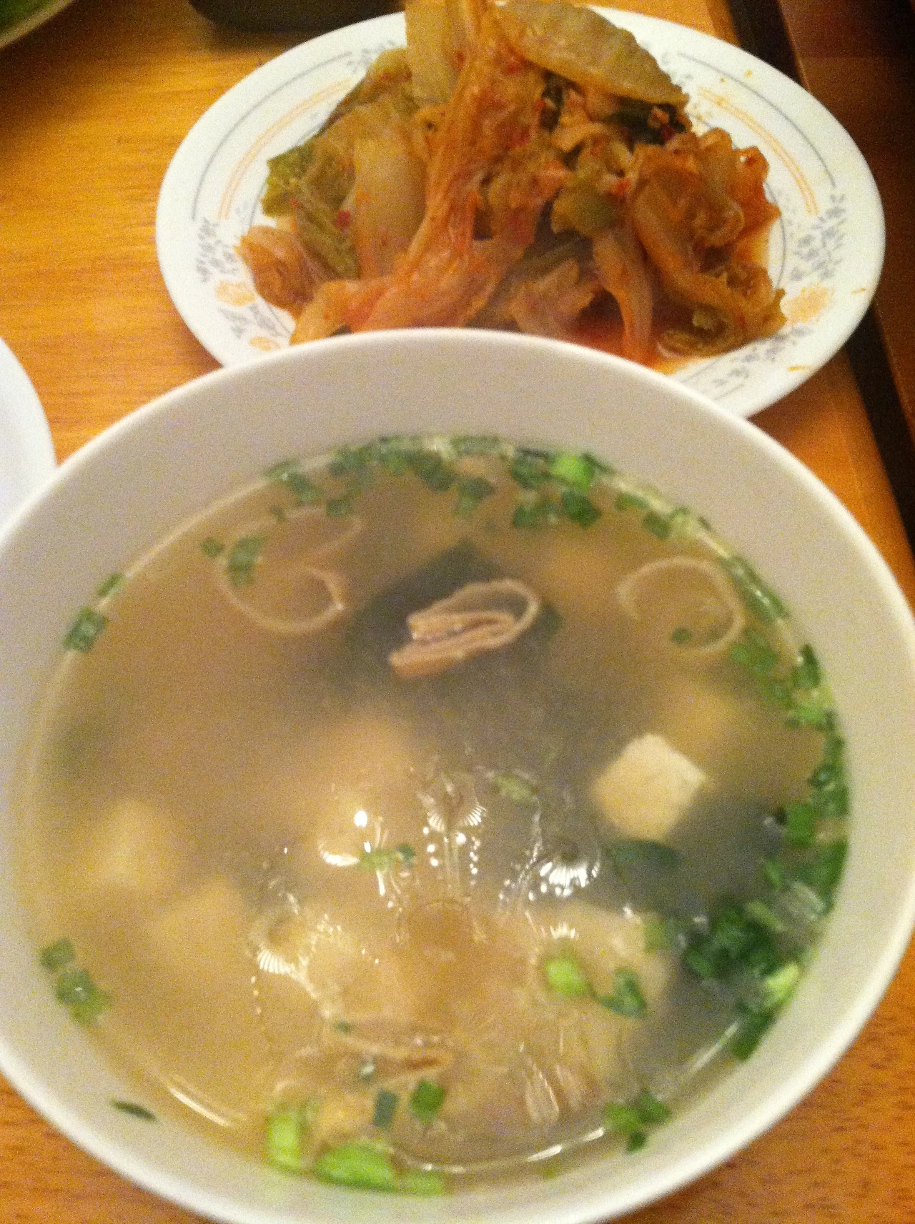 소금과 후추로 간을 해서 이미 반나절 정도 와인에 숙성시켰다는 통삼겹 덩어리들이 냉장고에서 나왔다. 이놈들을 오븐에 넣어 구워야 하는데, 문제는 오븐이 낡아 몇 도인지 표시가 안 된다고 했다. 대충 이 정도 스위치를 돌리면 돼, 하고 오빠는 현명한 바보 같은 표정을 지었다. 30분 정도 구우면 안이 아직 다 안 익어서 핏물이 촉촉한 상태인데, 이걸 잘라서 동그란 무쇠 팬에 마치 욱일기의 형상으로 (망할, 적당한 비유를 못 찾겠다) 꼼꼼히 늘어놓아 구우면 겉은 바삭하고 속은 촉촉한 삼겹살의 이데아가 만들어진다. 그 맛에 놀란 자들이 비결을 청하니 오빠는 반드시 껍데기가 있는 통삼겹을 사야 한다고, 정말 좋은 팬을 사서 오래 쓰는 것도 중요하다고 잔소리를 늘어놓기 시작했다. 3년 정도 삼겹살 기름을 머금더니 팬 자체가 맛을 만들어 낸다며 의기양양한 표정도 지었다. 뒷날 어느 여름에 다시 갔을 때는 생강과 계란 지단이 올라간 시원한 메밀국수가 함께 나왔었는데, 이 날은 고기가 오븐에서 땀을 내며 익는 동안 오빠가 부지런히 유부와 두부와 실파를 쫑쫑 썰더니 하트가 떠있는 따뜻하고 맑은 미소된장국을 끓여 곁들여 주었다.