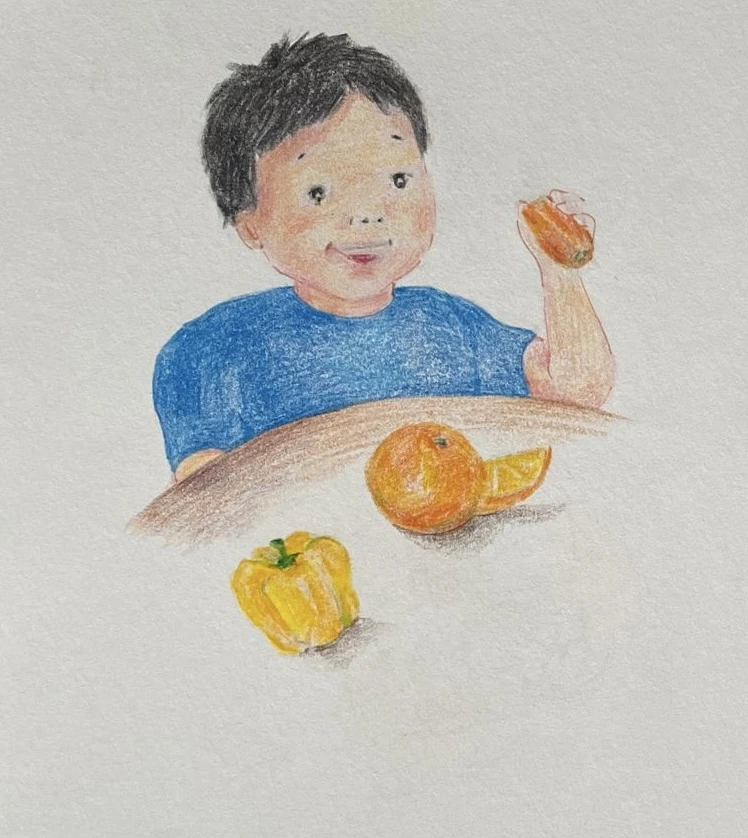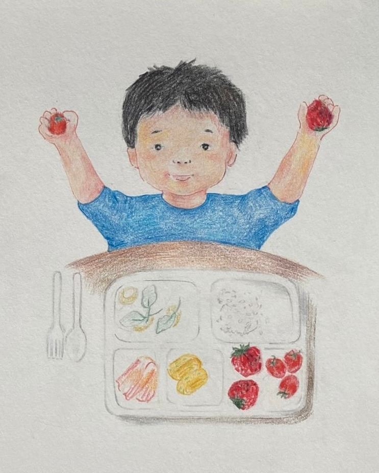 "내가 한 개 먹고, 네가 한 개 먹고, 그리고 남은 건 내가 먹을게. 나는 너보다 키가 작으니까 많이 먹고 키가 커야지!”