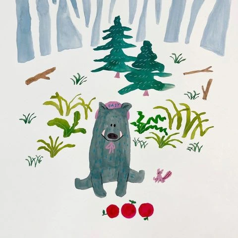 "무슨 소리야. 내가 한 개 먹고, 네가 한 개 먹고, 그리고 남은 건 내 거지! 나무에 올라가서 따온 건 나잖아! 그리고 나는 겨울잠을 자야 하니까 든든히 먹어둬야 한다구!"