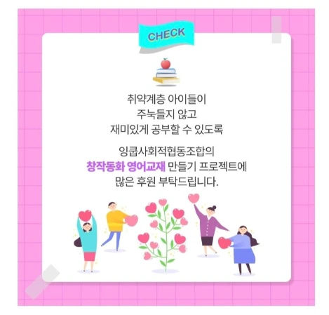 창작동화 영어교육 리딩 교재 300권 제작 비용으로 천만 원의 목표 금액을 모으고 계신다고 해요.