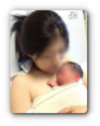 두 번째 아이라 수유 자세도 힘들지 않게 제자리를 잡았지만 첫날에 당장 배부르게 나올 리는 없었다. 간호사들이 띠처럼 된 헝겊을 내게 두르고 그 안에 아기를 쏙 넣었다. 엄마와 살을 맞대고 있게 하려는 것.