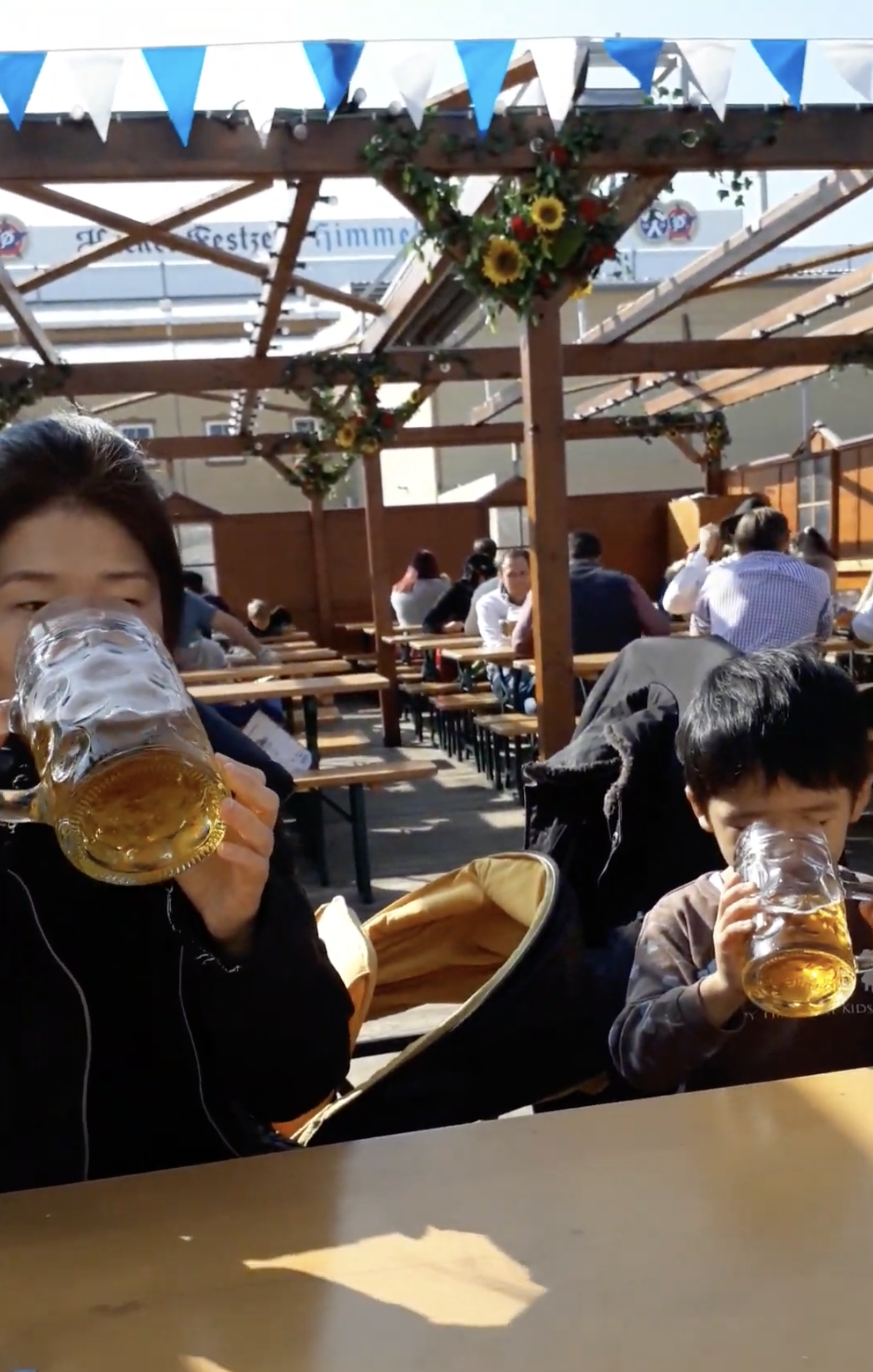 천막에 입장하면 귀가 먹먹해지면서 차원을 건너온 듯한 느낌이 들곤 한다. 살짝 상승한 온도감, 사람들이 웅성거리는 소리에 잔 부딪는 소리. 밴드는 쿵짝쿵짝 신명 나는 음악을 연주하고, 소시지와 감자, 고기 굽는 냄새가 코 끝에 휘감긴다. 분위기가 무르익으면 사람들은 어깨를 걸고 함께 노래를 부르며 목청 높여 건배를 하는데, 수많은 맥주잔이 동시에 부딪히는 소리를 배경으로 "Prost!('프로스트!'라고 많이 알려져 있지만 실제 발음은 프호스트에 가깝다)"를 외칠 때 축제의 흥은 절정에 다다른다.