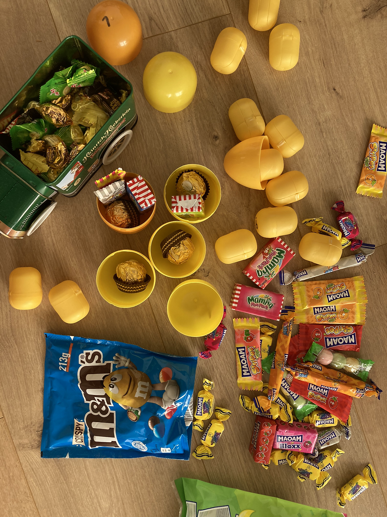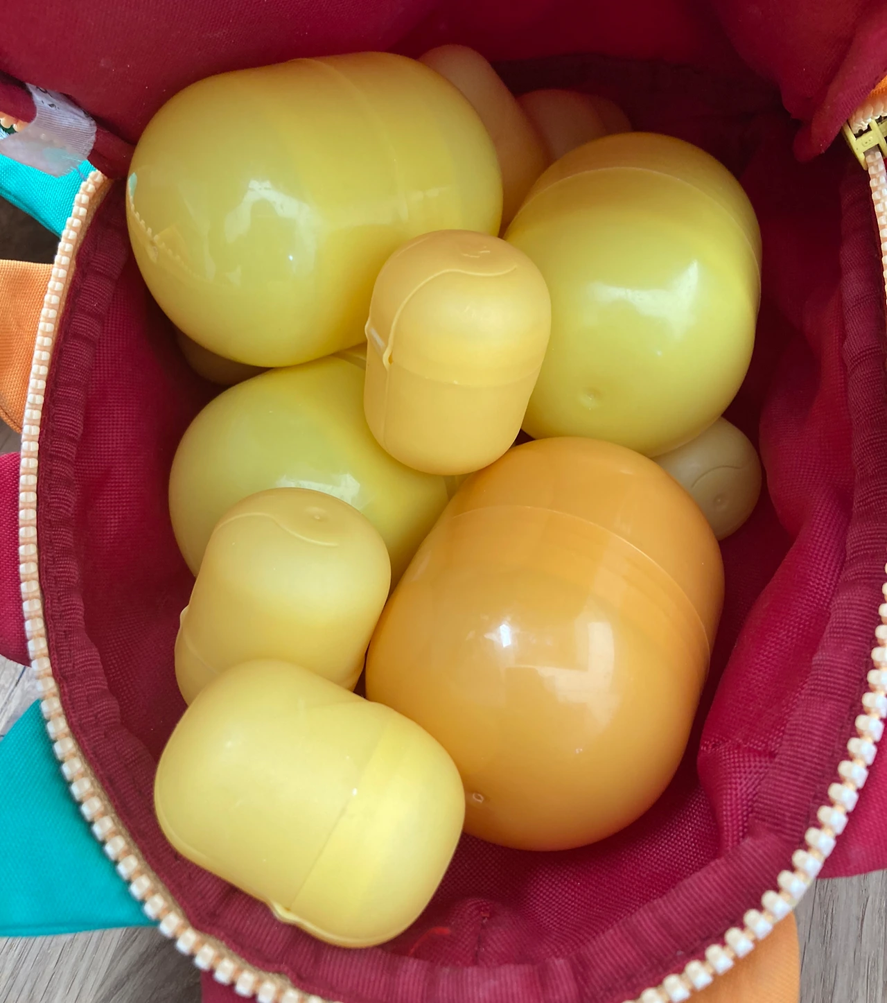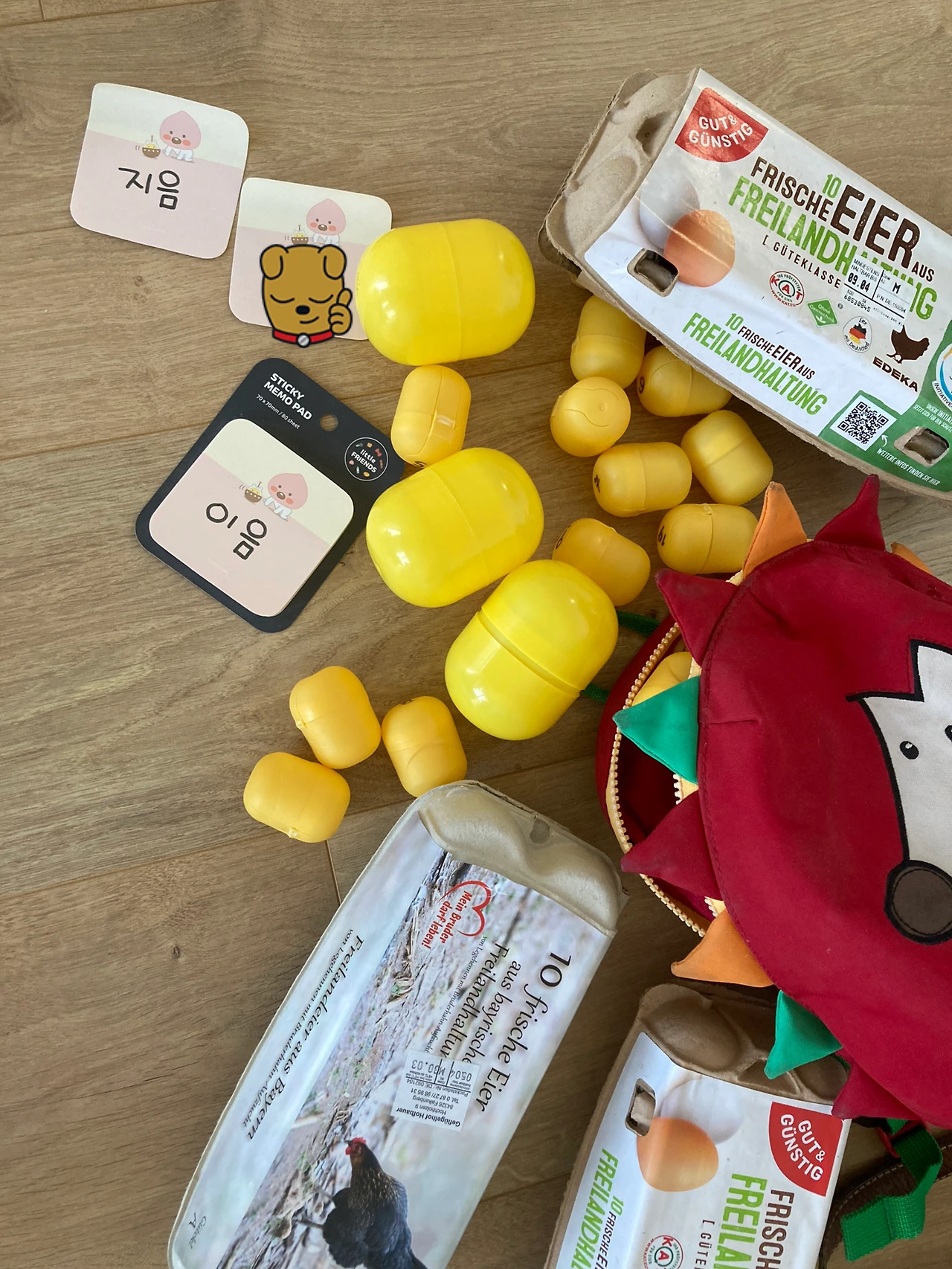 이번 글에 제가 소개할 달걀 찾기 놀이는 진짜 달걀을 사용하는 것은 아니지만, 아이들이 진짜보다 더 좋아하는 달걀(껍질)을 이용합니다. 달걀 찾기에 환장하는 아이들을 위해 저는 이것을 버리지 않고 모아두는데요. 한국에서도 킨더조이 사시느라 허리가 휘시는 부모님들, 이 플라스틱 달걀 껍데기 모아 두셨다가 이렇게 활용하시면 아이들이 참 좋아합니다. 저는 부활절 때도 하고, 생일 때도 하고, 그냥 아무 날도 아닌 날에도 가끔 불현듯 떨쳐 일어나 이놈들을 숨기곤 합니다.