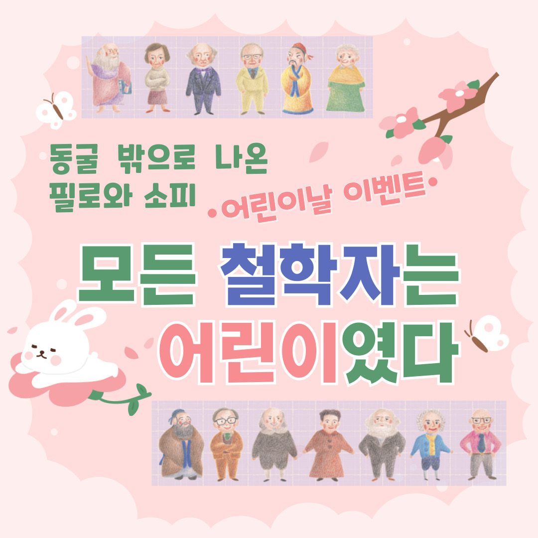 지금 인스타그램에서 이벤트를 진행 중이에요. 공자부터 롤스까지 동화로 읽는 13가지 철학 이야기, <동굴 밖으로 나온 필로와 소피> 어린이날 이벤트를 마련했습니다.