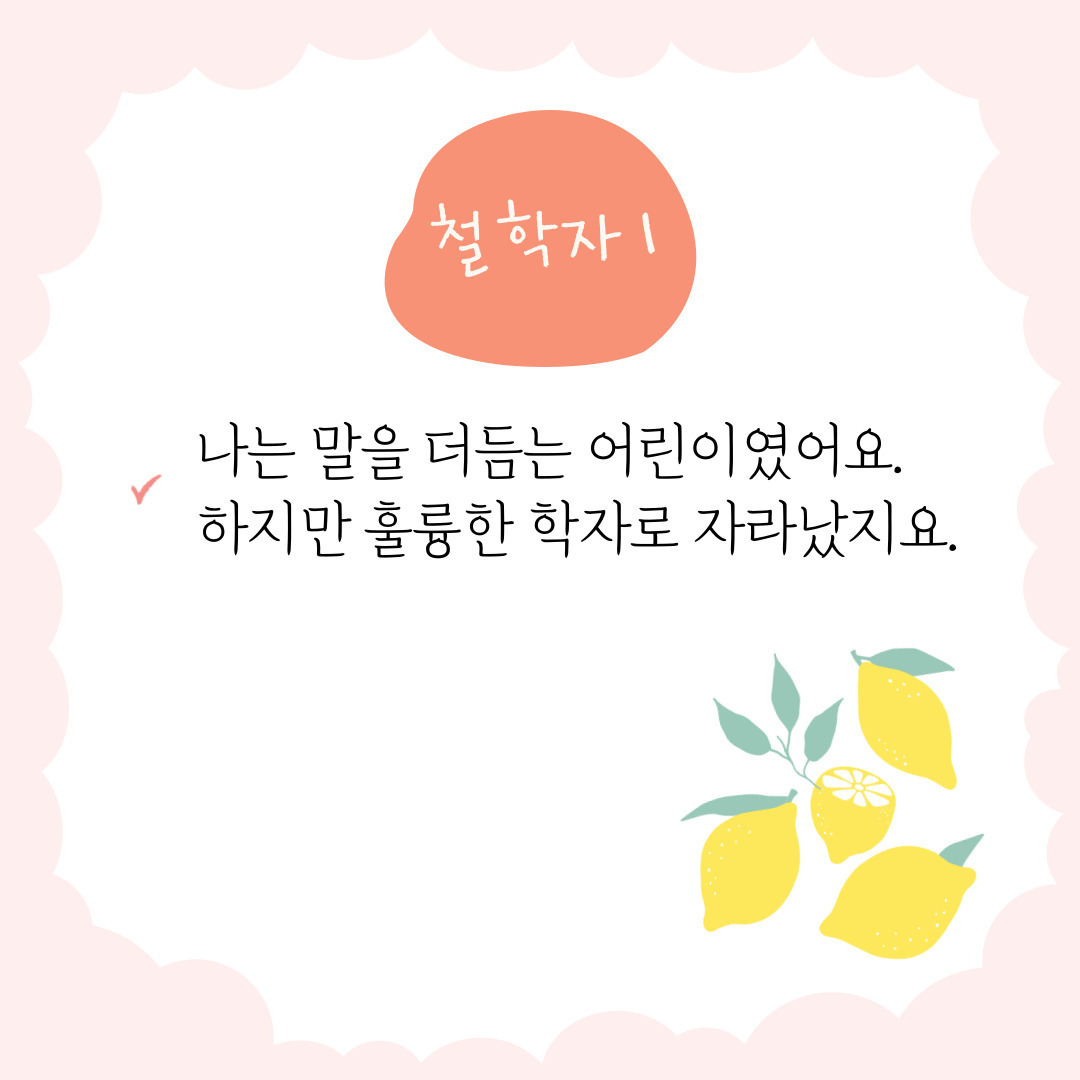 철학자도 모두 어린이였습니다. 입가에 미소가 걸리는 어린이, 안아 주고 싶은 어린이, 마음이 아파지는 어린이. 이 어린이들의 짧은 이야기가 그 자체로 작은 울림이 되리라 생각합니다.