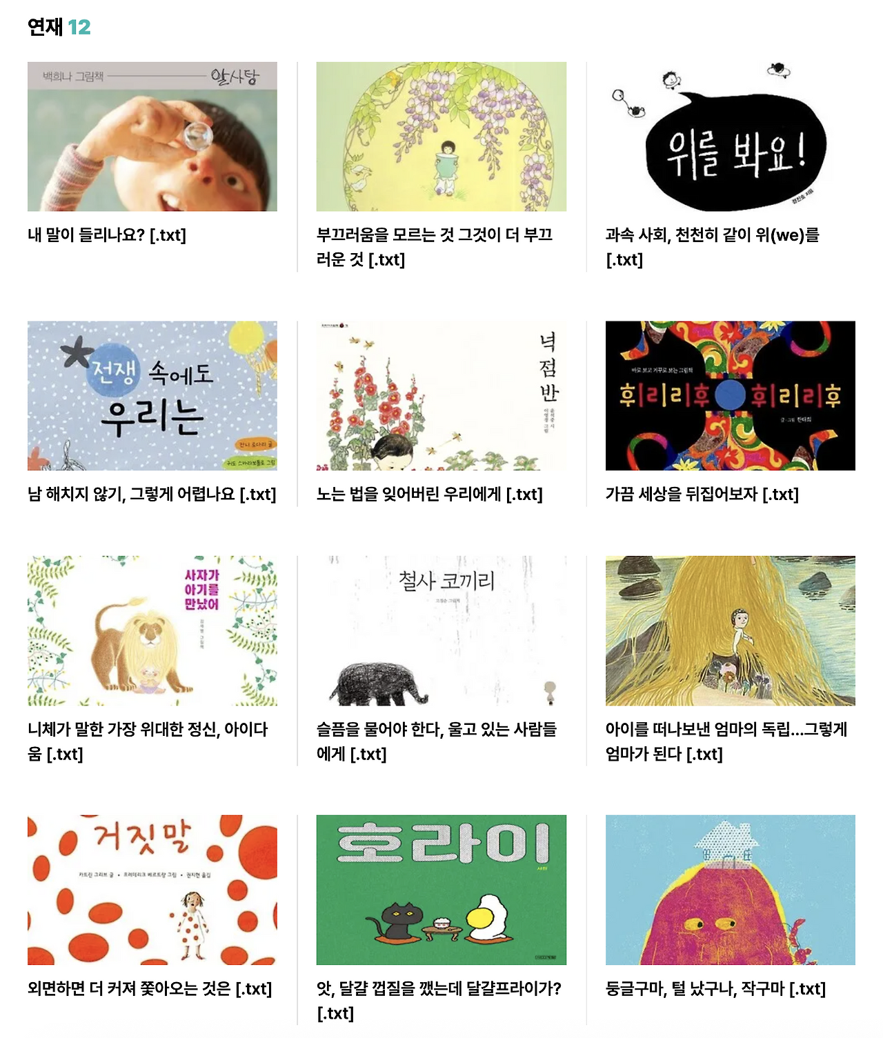 한겨레신문에 연재하는 '이진민의 그림책이 철학을 만날 때' 열두 번째 글입니다. 제목은 데스크에서 더 좋은 걸로 바꿔 주시는데, 이번 글은 처음으로 제가 붙인 제목 그대로 나갔네요 :) 제가 무척 좋아하는 그림책이어서, 한 페이지씩 다시 넘겨 보며 행복하고 감사한 마음으로 썼습니다. 이 책 좋아하는 분들 많으시지요? 가을이 되면 어디선가 동동이가 맑게 잘 크고 있기를 바라는 마음이 생길 정도로 아름다운 이야기를 만들어 주신 백희나 작가님, 고맙습니다.